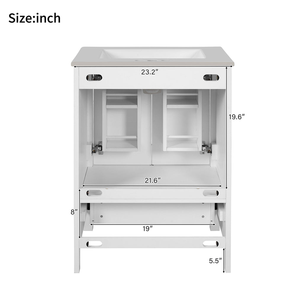 24" Bathroom Vanity With Integrated Undermount Sink, Soft Close Doors, 2 Doors 1 Drawer Storage - White