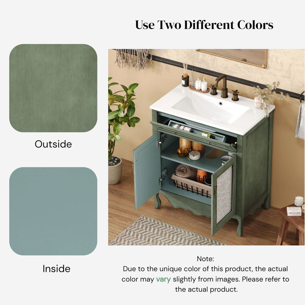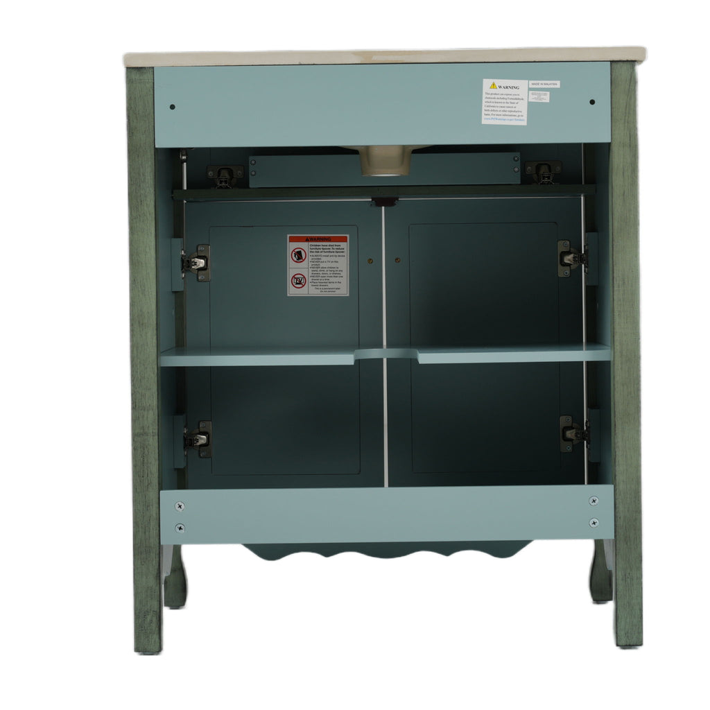 Bathroom Vanity With Rectangle Sink, Tip Out Tray - Antique Blue Green