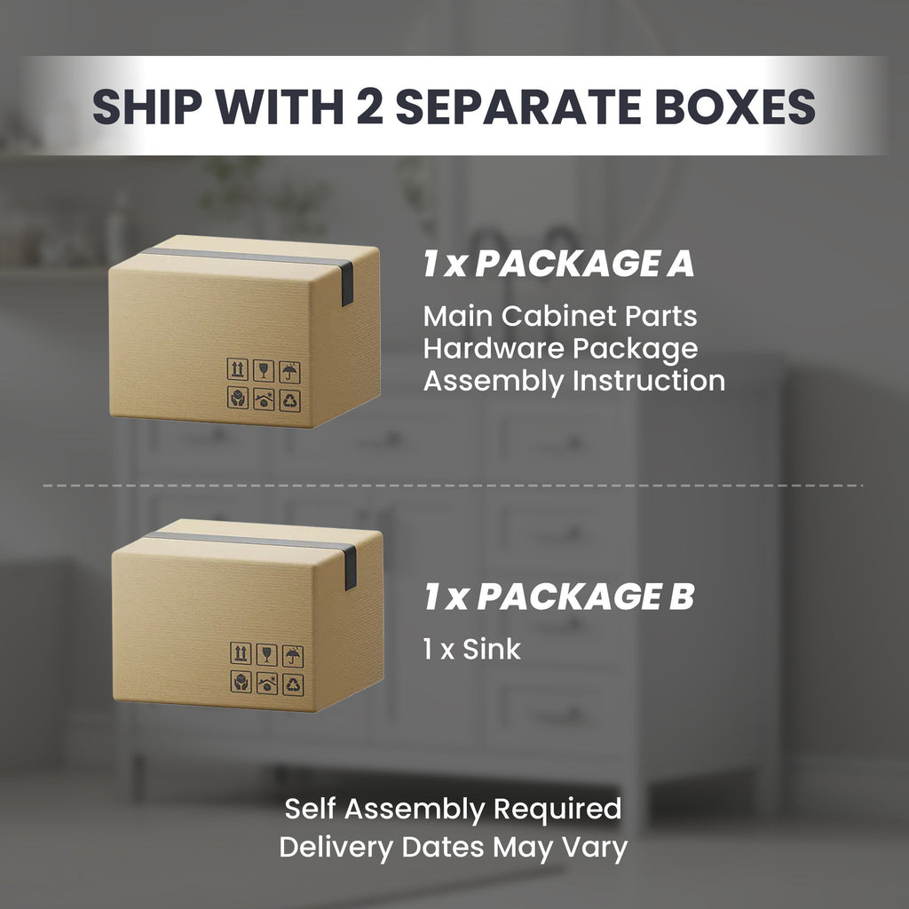 - Cabinet + Vanity Top Combo: Includes both the cabinet and resin sink top in two separate packages for safe delivery, eliminating the need for additional components.