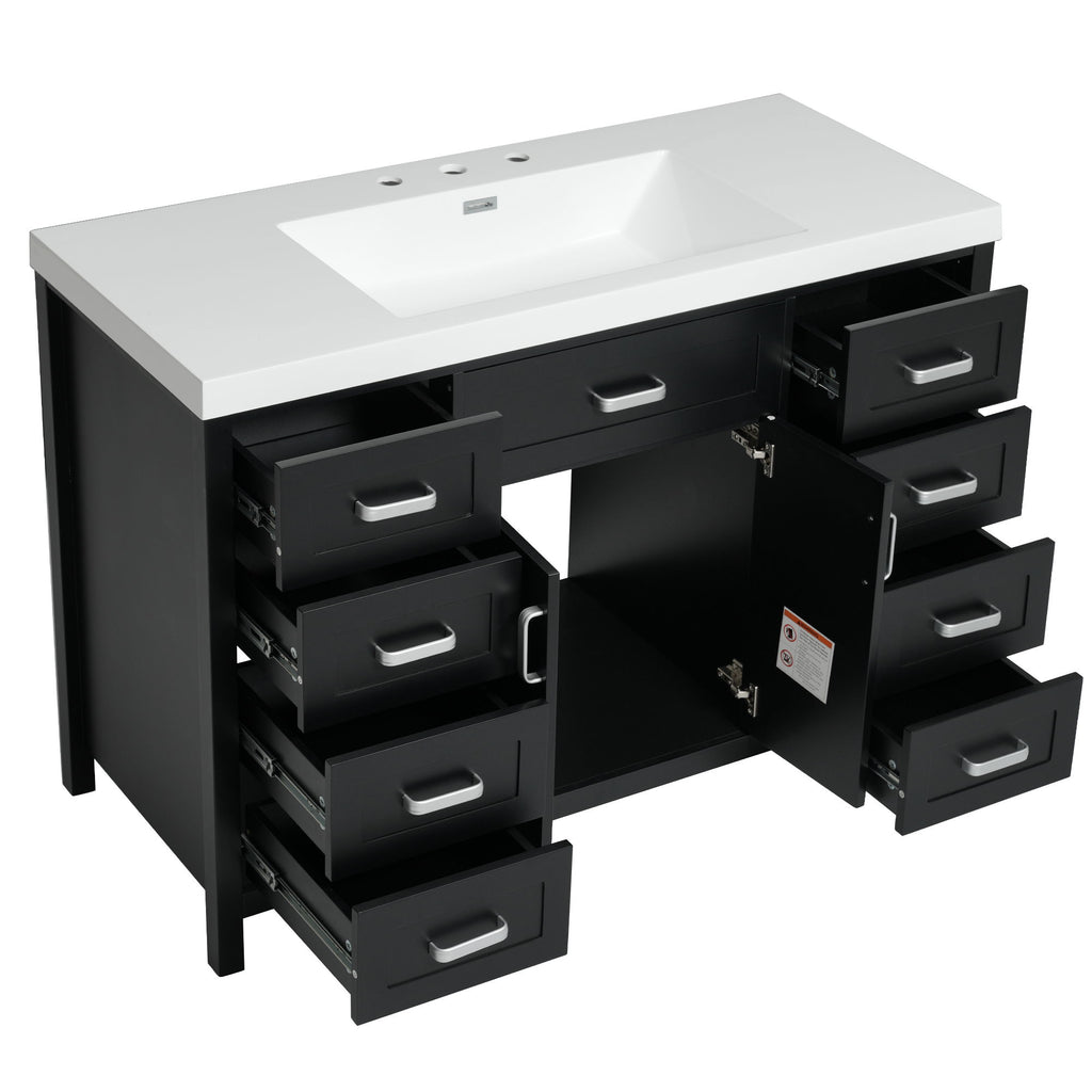 Bathroom Vanity With Sink, 2 Doors 8 Drawers, Soft Close System - Black