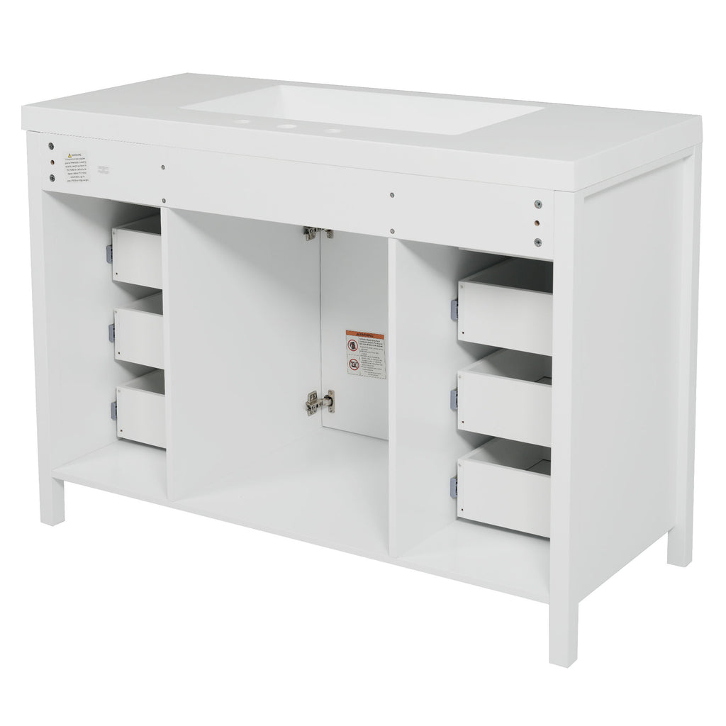 Bathroom Vanity With Sink, 2 Doors 8 Drawers, Soft Close System - White
