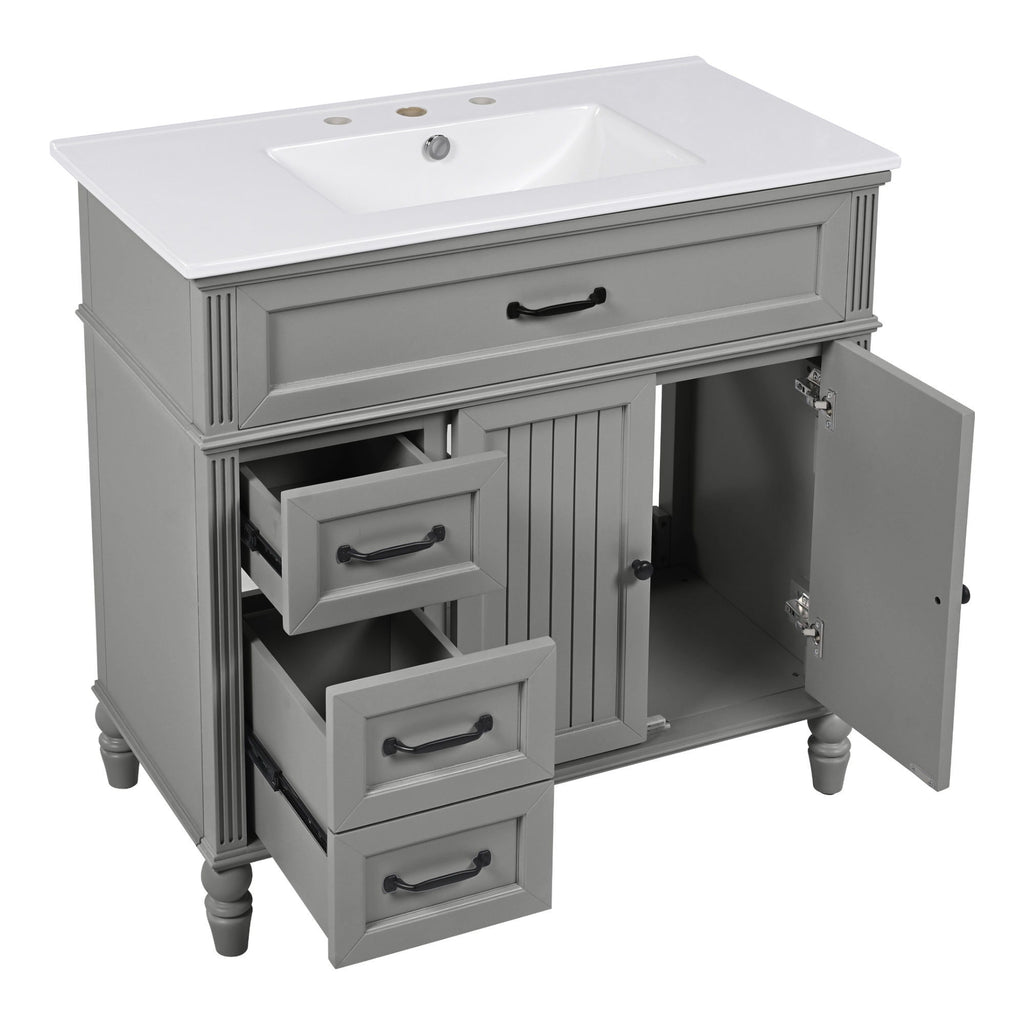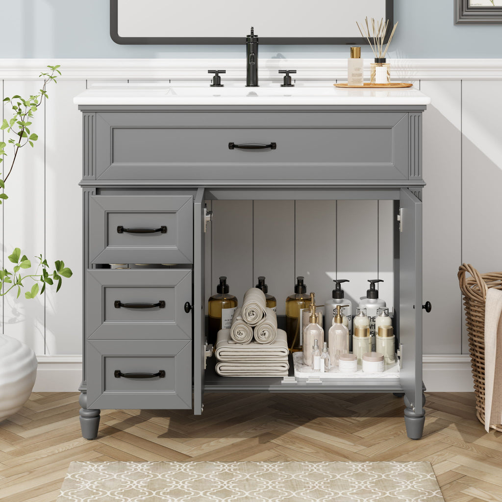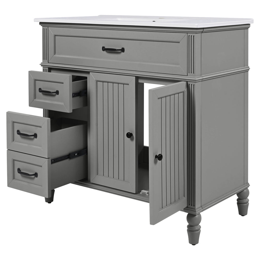 Bathroom Vanity With Sink, Freestanding Cabinet With Drawers - Gray