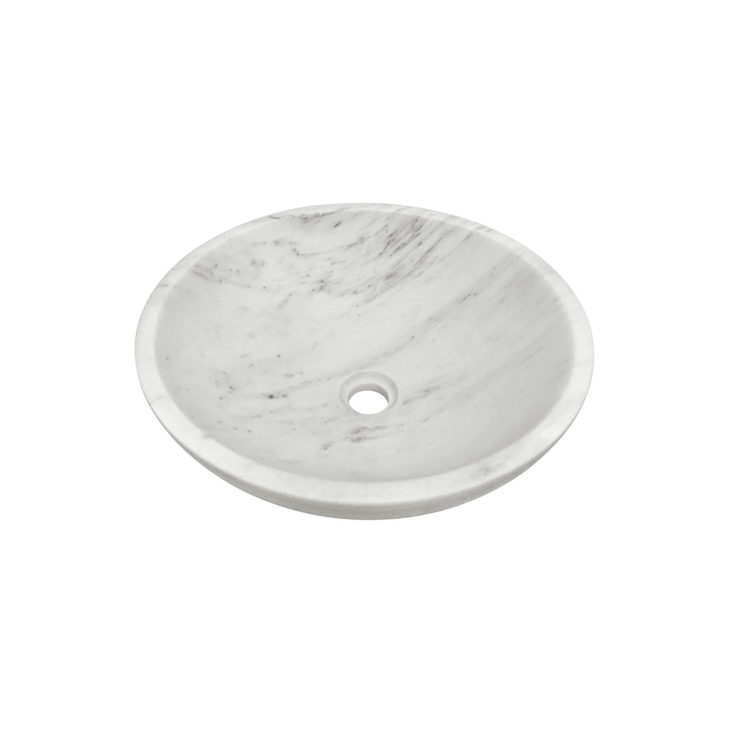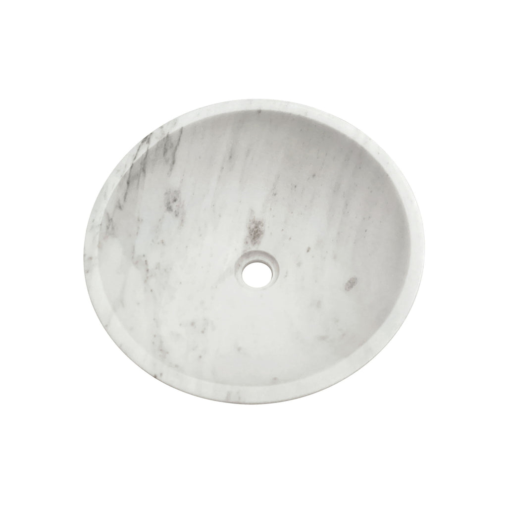 Bathroom Vessel Sink, Semi Polished Surface, Genuine Real Marble - White / Natural