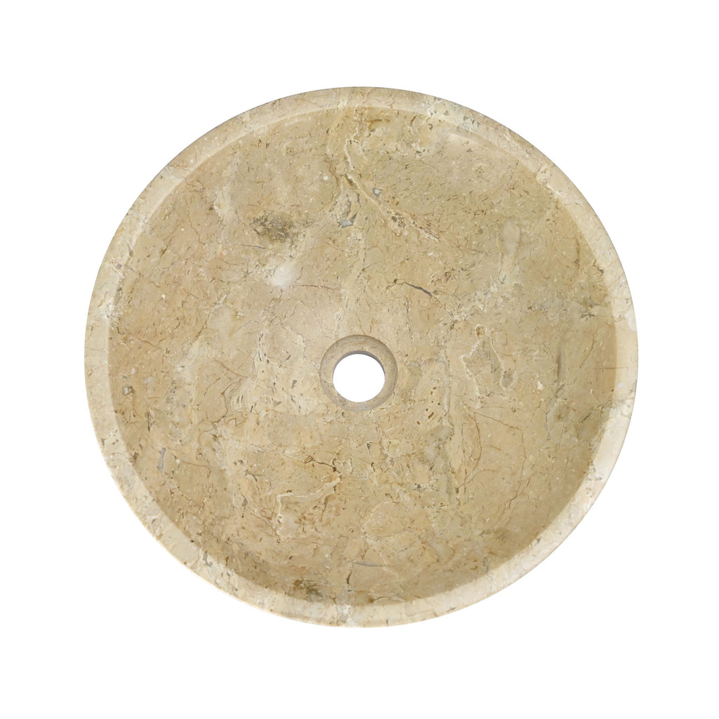 Bathroom Vessel Sink, Semi Polished Surface, Genuine Real Marble - Beige / Gold