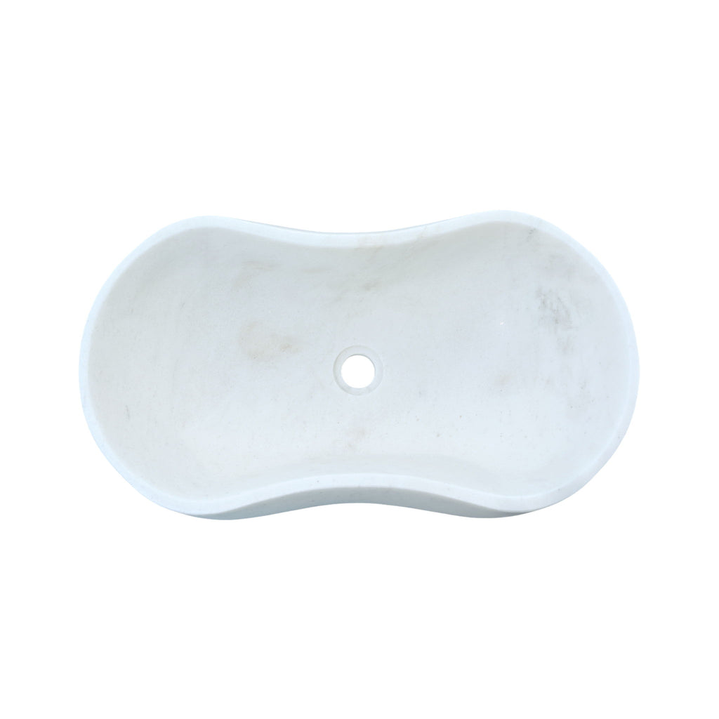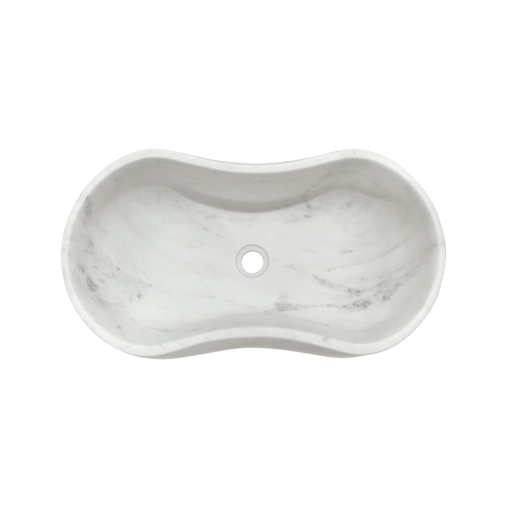 Bathroom Vessel Sink, Wavy Design, Semi Polished Surface - White / Natural