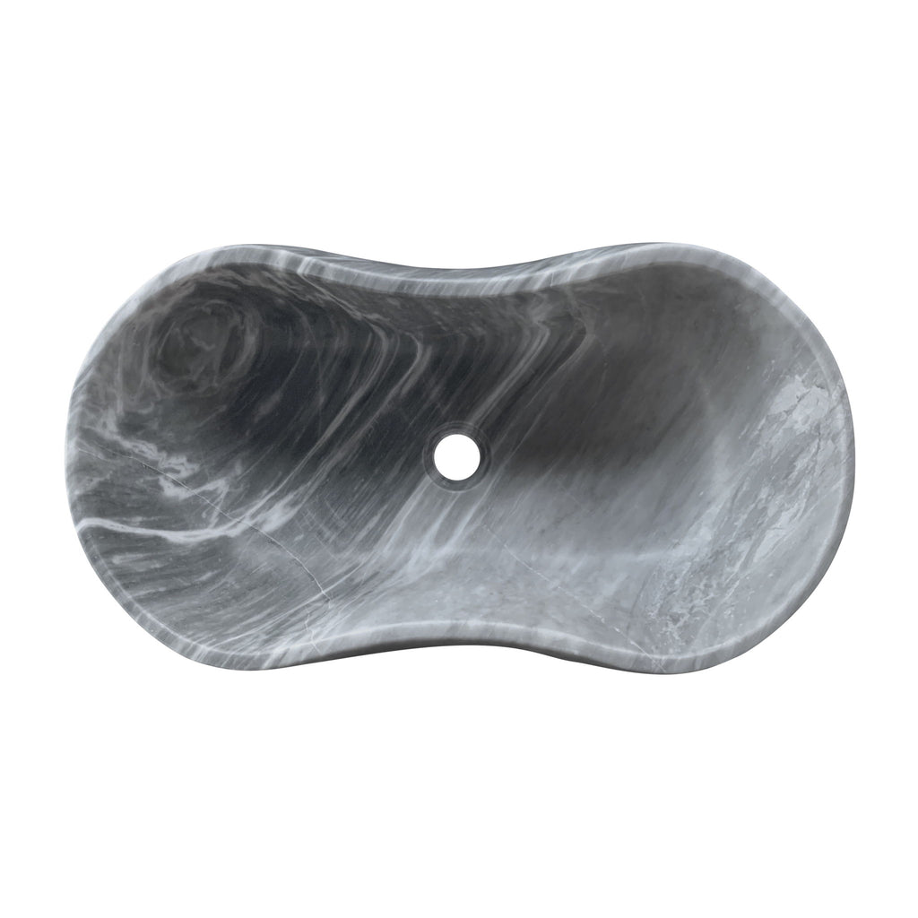Bathroom Vessel Sink, Wavy Design, Semi Polished Surface - Gray