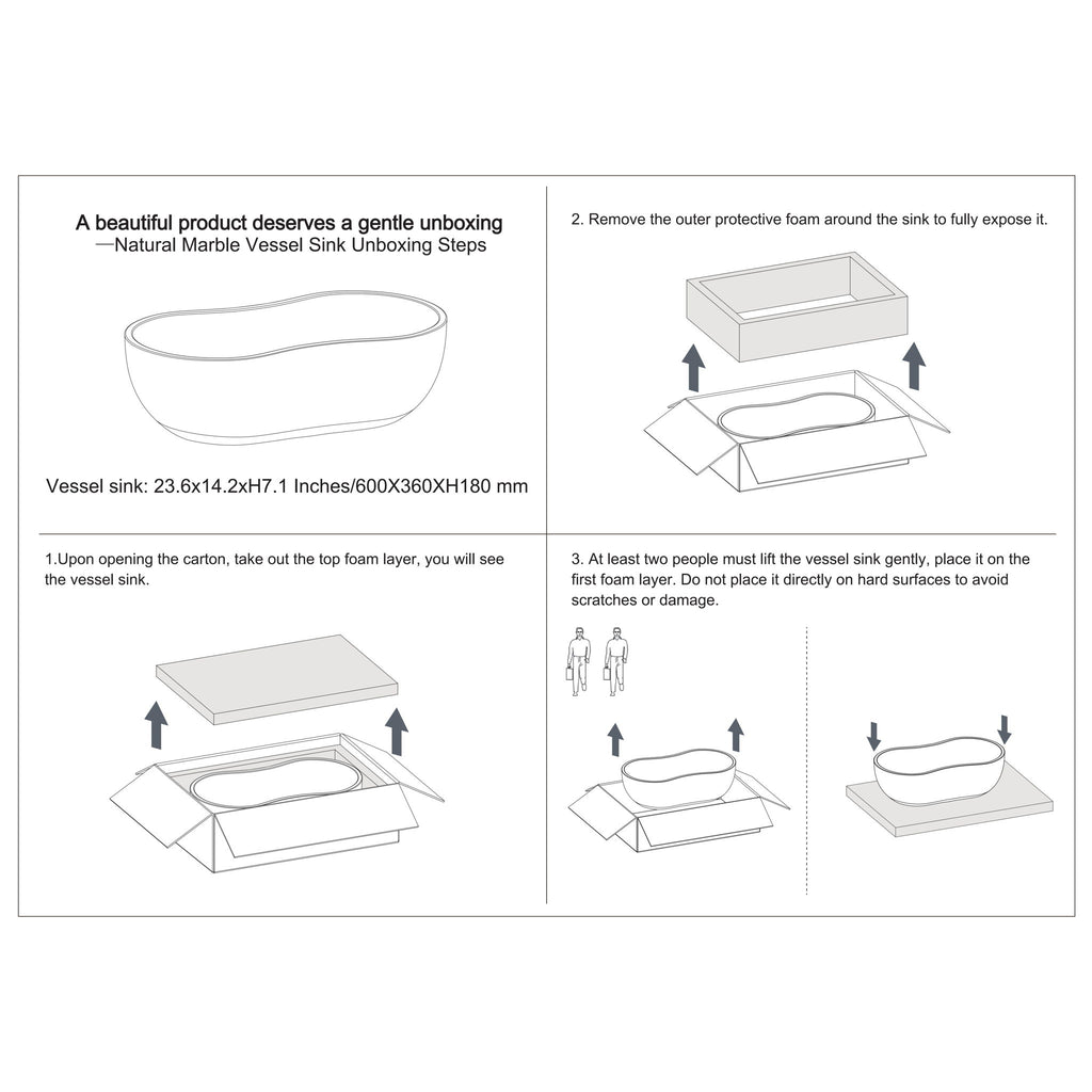 - Crafted from snow mountain natural marble, this sink showcases authentic veining and natural beauty with lasting durability.