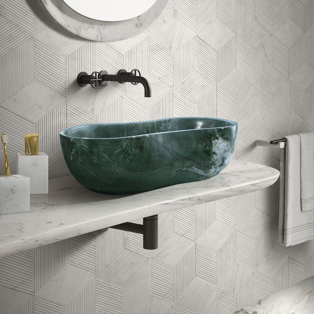 - Part of a coordinated marble collection, compatible with matching tiles and other sink shapes for unified styling.