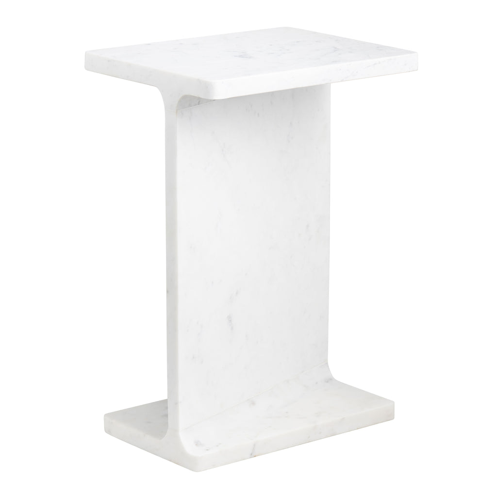 Whether you're seeking the perfect addition in your entertaining space or a conversation piece in your home office, look no further than the Beam Accent Table. Expertly curated from a single slab of marble, this design is worthy of display in a modern museum. Its white finish with subtle light gray highlights captures the eye and is further accentuated by its unique, geometric shape. Minimalistic in nature, this accent table is guaranteed to elevate your contemporary themed interior.