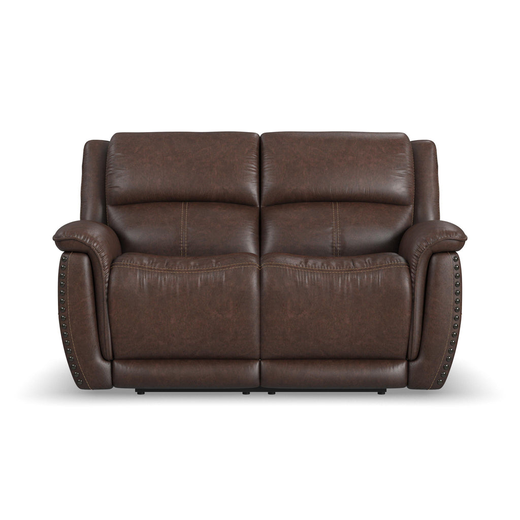 Beautiful, traditional style is enhanced with modern features and ergonomics with the Beau fabric power reclining loveseat with console and power headrests. Striking nailhead trim and flange-edge stitching detail make a timeless design statement that looks equally at home in a modern farmhouse living room or rustic man cave. Soft, pad-over arms, contoured seats and extended footrests offer exceptional comfort for two, while Zero Gravity technology provides a feeling of weightlessness. Useful features such as charging ports, a center storage console and power headrests offer added convenience that will make Beau your favorite spot in the house.