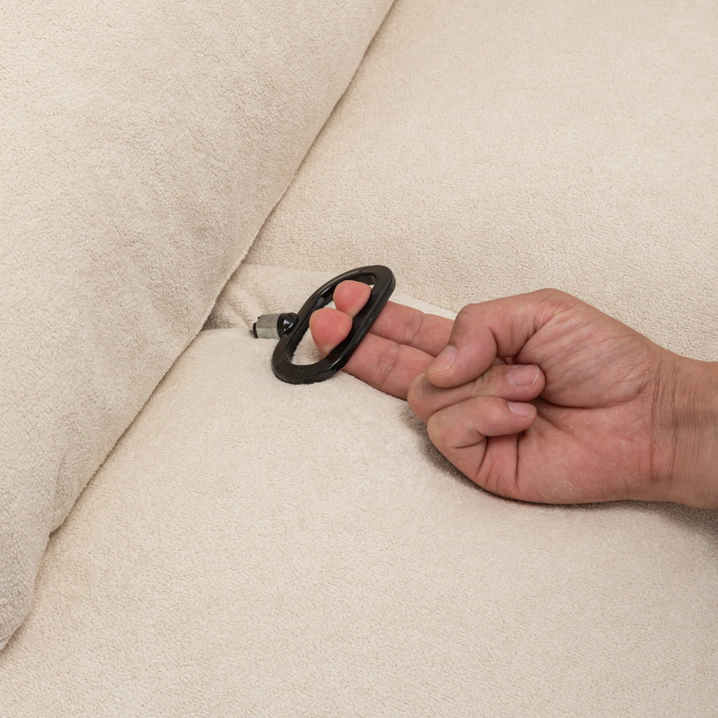 - Operation is simple: pull the cable on the side of the recliner, raise the footrest, and the chair adjusts to the standard TV position. You can then lean back and push the backrest up to 150 degrees. When the footrest is retracted, you can lean forward, sit upright, and press your heels into the center of the footrest.