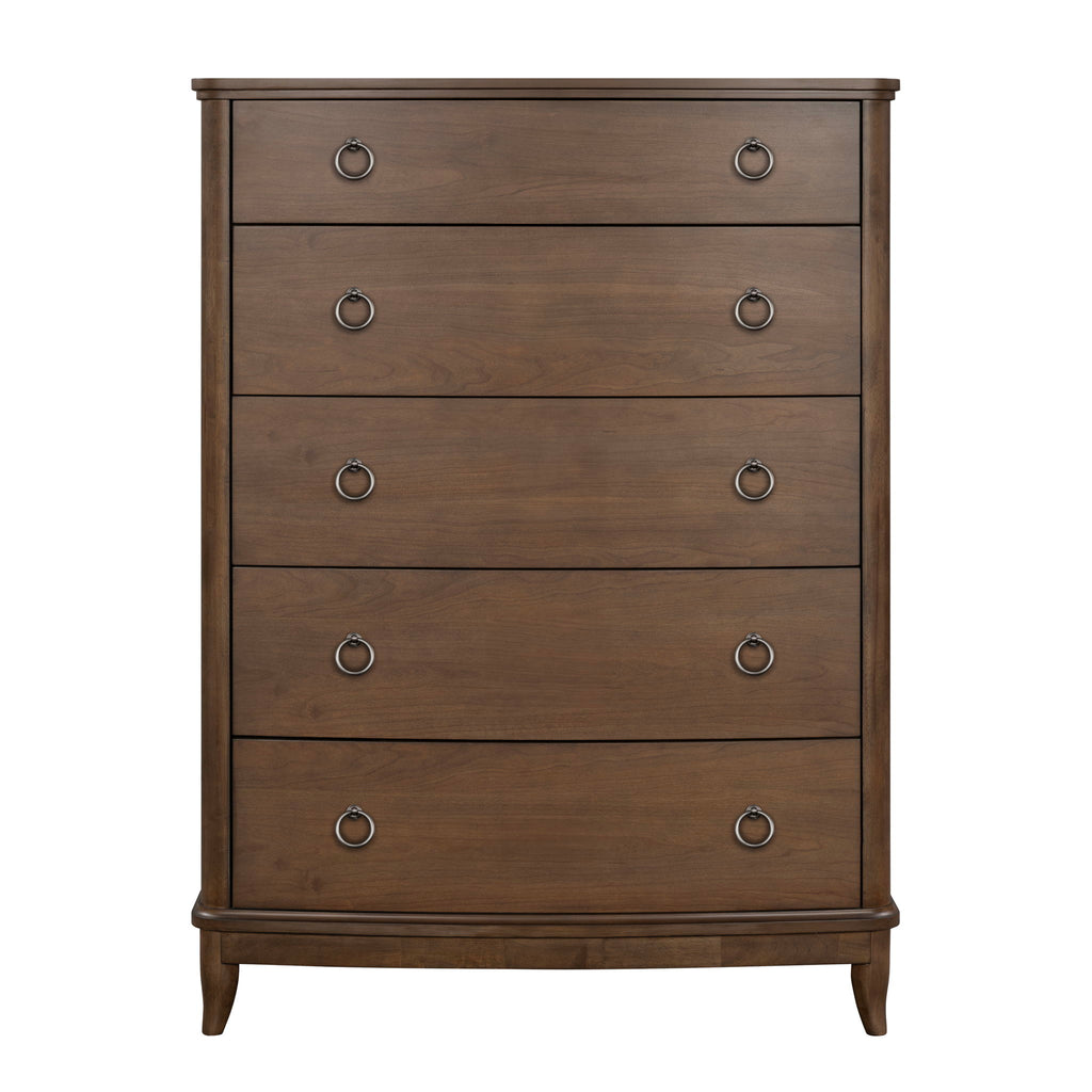 Elegant yet practical, the Bellevue drawer chest is a true heirloom, with everlasting utility in a graceful package. A stately silhouette in a rich whiskey brown finish, this piece will house all your odds and ends and bring some opulence to your organization. Each soft-close drawer brings ample space for any need, topped off with gleaming pewter ring pulls. Perched on a classic taper leg, the Bellevue dresser is enduring style in a functional, everyday package.