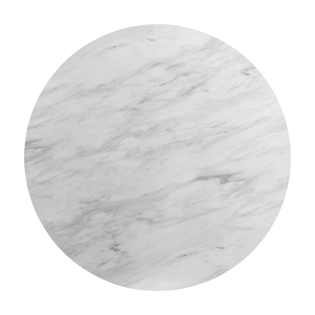 A beautiful round dining table that is a statement piece at first glance. Featuring an elegant silhouette that speaks to its contemporary style, this table is finished with a marble paper veneer that adds fresh originality. Let this piece settle into your home and enhance your effortless style in either a beautiful white or grey color.