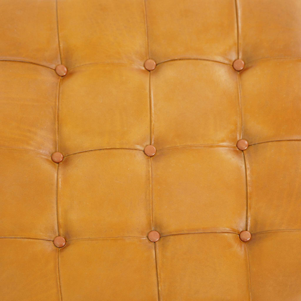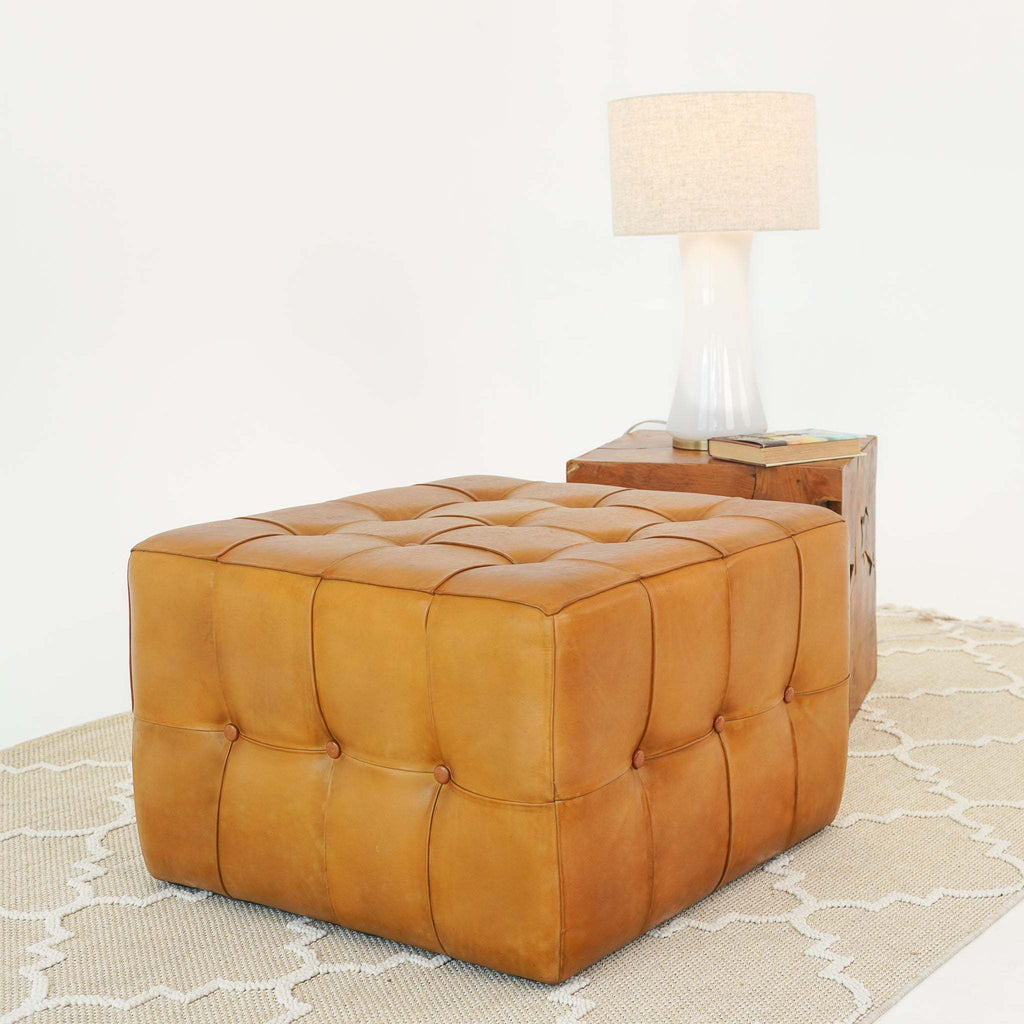 - Our Mid-Century ottoman is timeless in style and a handsome accent, with classic coloring in tan genuine leather.