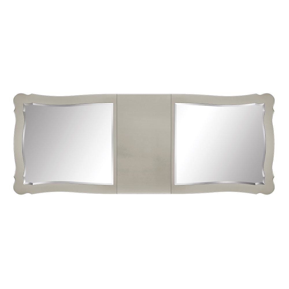 An ode to traditional glamour, the Devayne dining table brings in all the allure and charm that you are seeking for a dining table. The table features an extension leaf that allows for additional dinner guests. The champagne finish enhances the beautiful floral moldings on the legs and apron. The tabletop features mirrored panels that highlight your dinnerware.