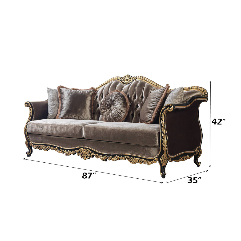 Betria - Sofa With 5 Pillows - Light Green Velvet, Gold & Black High Gloss 87.0"W x 35.0"D x 42.0"H - 148.0 lb