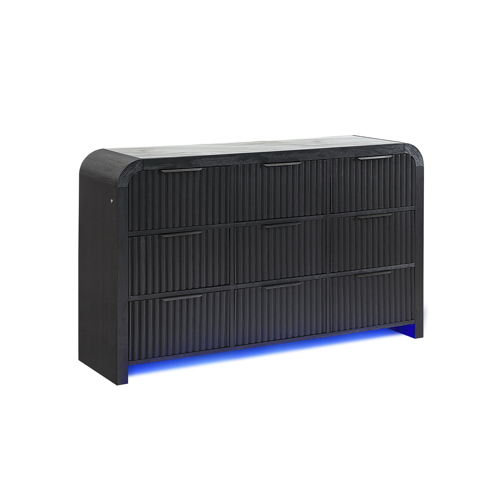 Beverly - 5 Piece King Bedroom Set With Fluted Detailing, Partial, LED Lights, And Speaker Integrated Nightstand - Black White