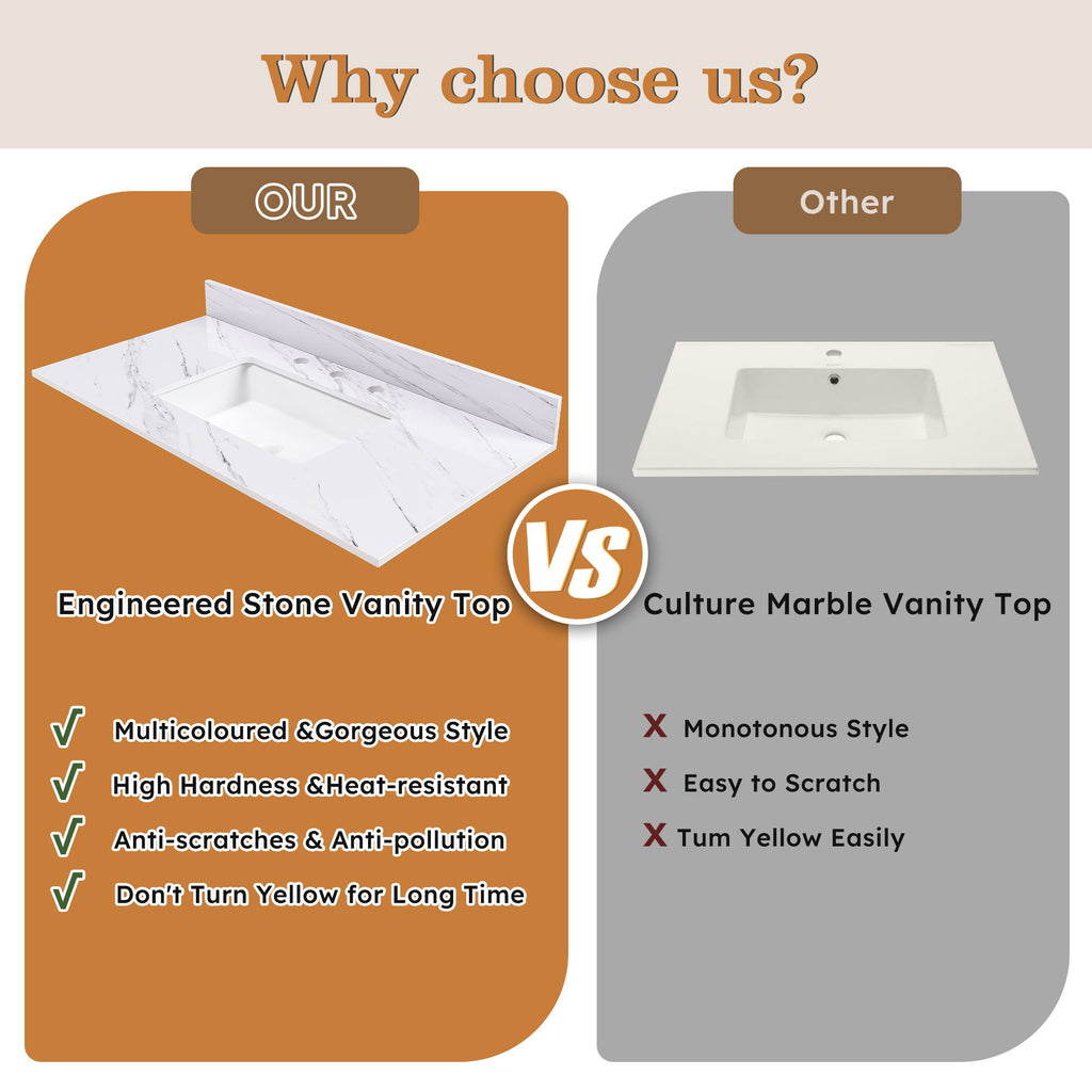 - Dimensions: Vanity top measures, perfectly fitting most standard vanity cabinets.