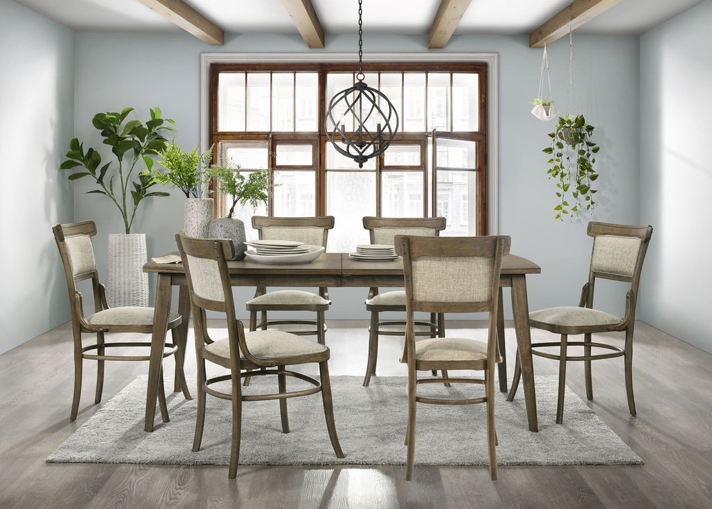 Bistro - 7 Piece Dining Table With Off White Fabric Dining Chairs (Set of 7) - Vintage Walnut