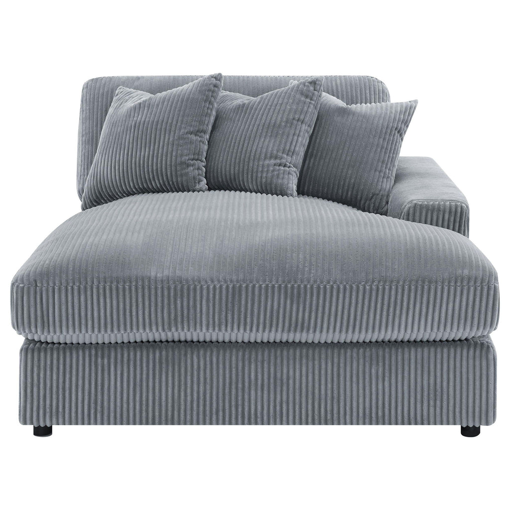 Wrap yourself in the inviting allure of this three-piece sectional, where timeless design meets modern versatility. The additional armless chair in the center expands your lounge space, creating a sanctuary of comfort and style. Draped in luxurious, wide corduroy fabric, this sectional whispers sophistication in either fog or sand hues. Its reversible chaise can adapt to any space, ensuring a perfect fit for your home's layout. Let this sofa be the canvas for your relaxation, crafted for those who appreciate both form and function.