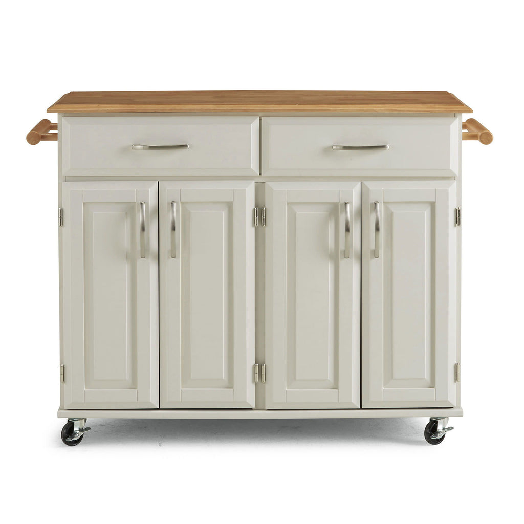 - Two utility drawers and two storage cabinets accommodate pots, pans and small appliances.
