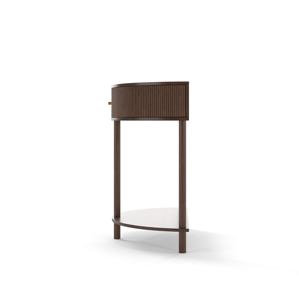 Artisan Crafted Wave Pattern Demi Lune Console Table With Brown Woodgrain, Unique Half Moon Design End Table With 2 Storage Drawers And Bottom Shelf For Living Room, Bedroom, Study, Hallway - Brown