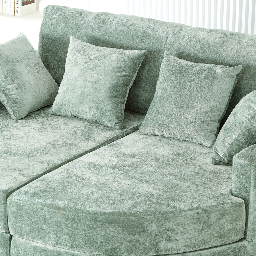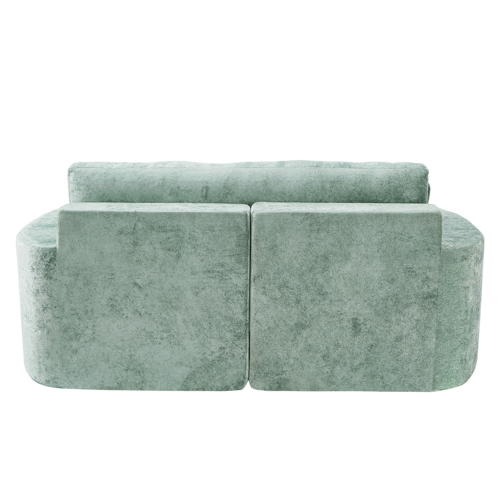 Curved Chaise Sofa, Boneless Design Upholstered Lounge With Cup Holders - Green