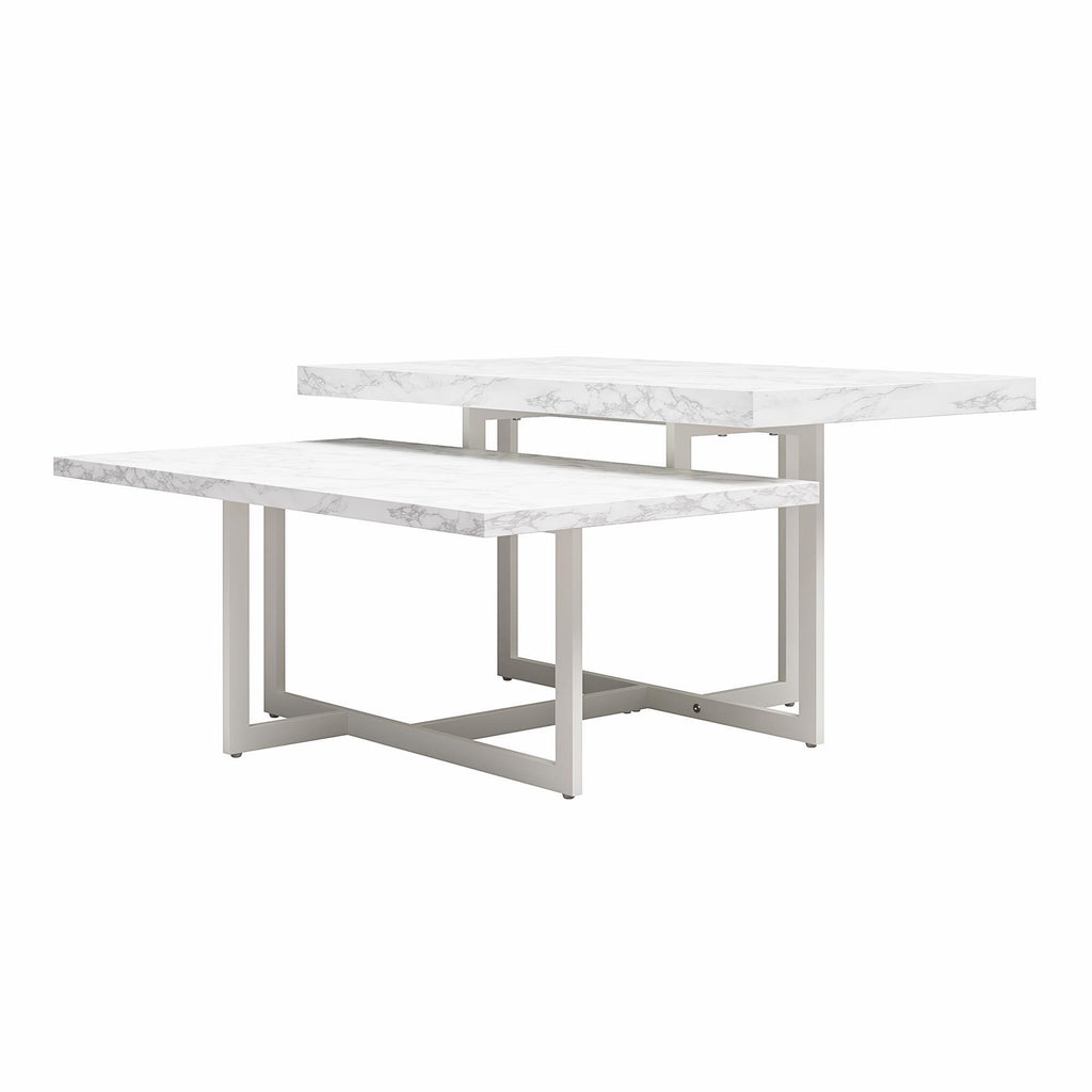 Brielle - Coffee Table, 2 Tiered Design - White Marble