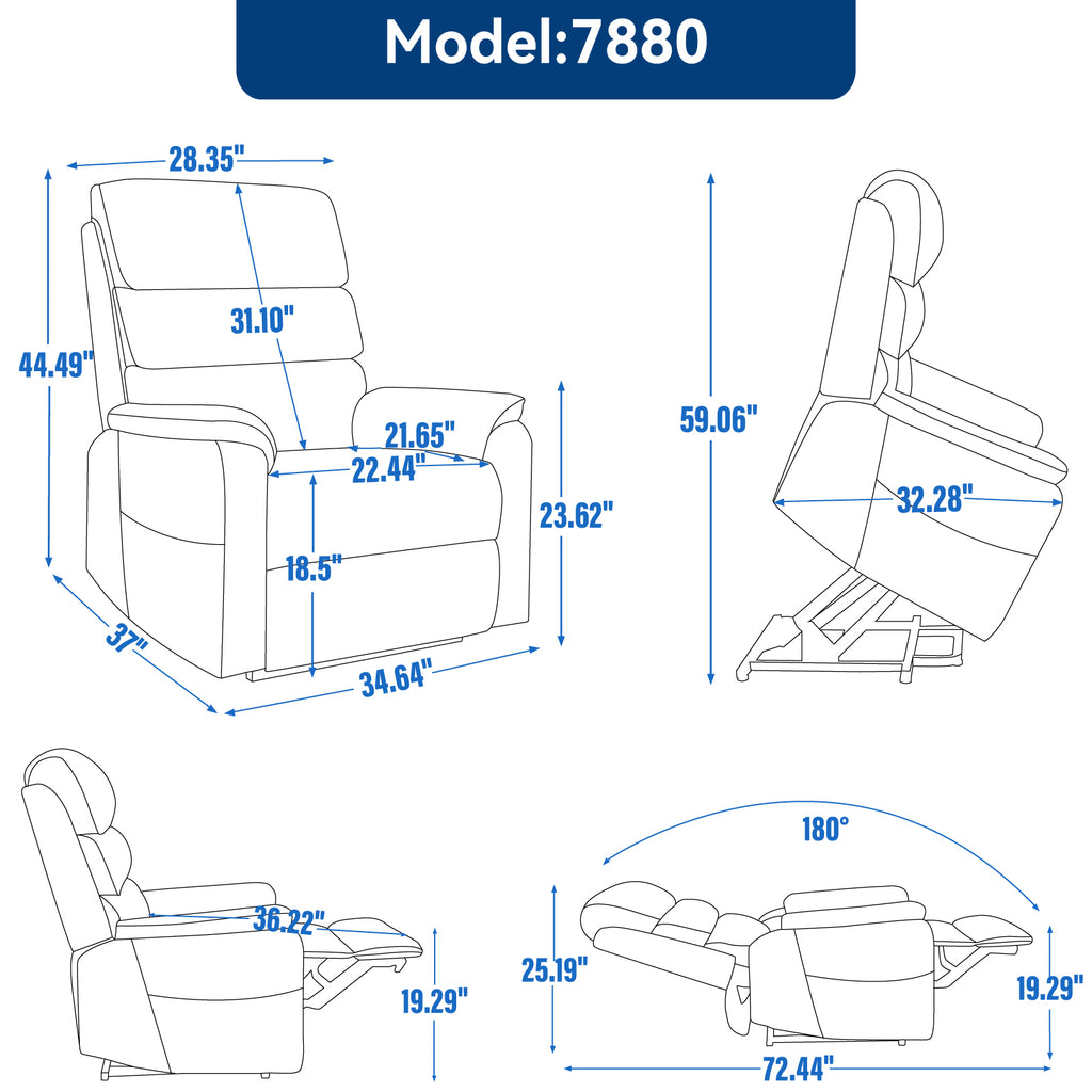 - POWER LIFT RECLINER CHAIR WITH DUAL MOTOR: You can press the power remote to control the lift or recline of the recliner chair, which means you can get any position you want, it's reclining close to 180 degrees or lifting. The lift chair is powered by electric motor mechanism to push the entire chair up, working smoothly and silently to help the elderly stand up easily. It's also ideal for people who have balance problems with legs or back, or who after surgery.