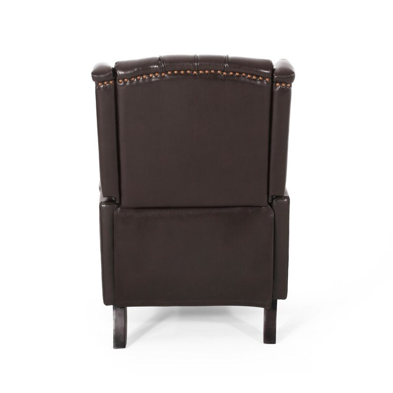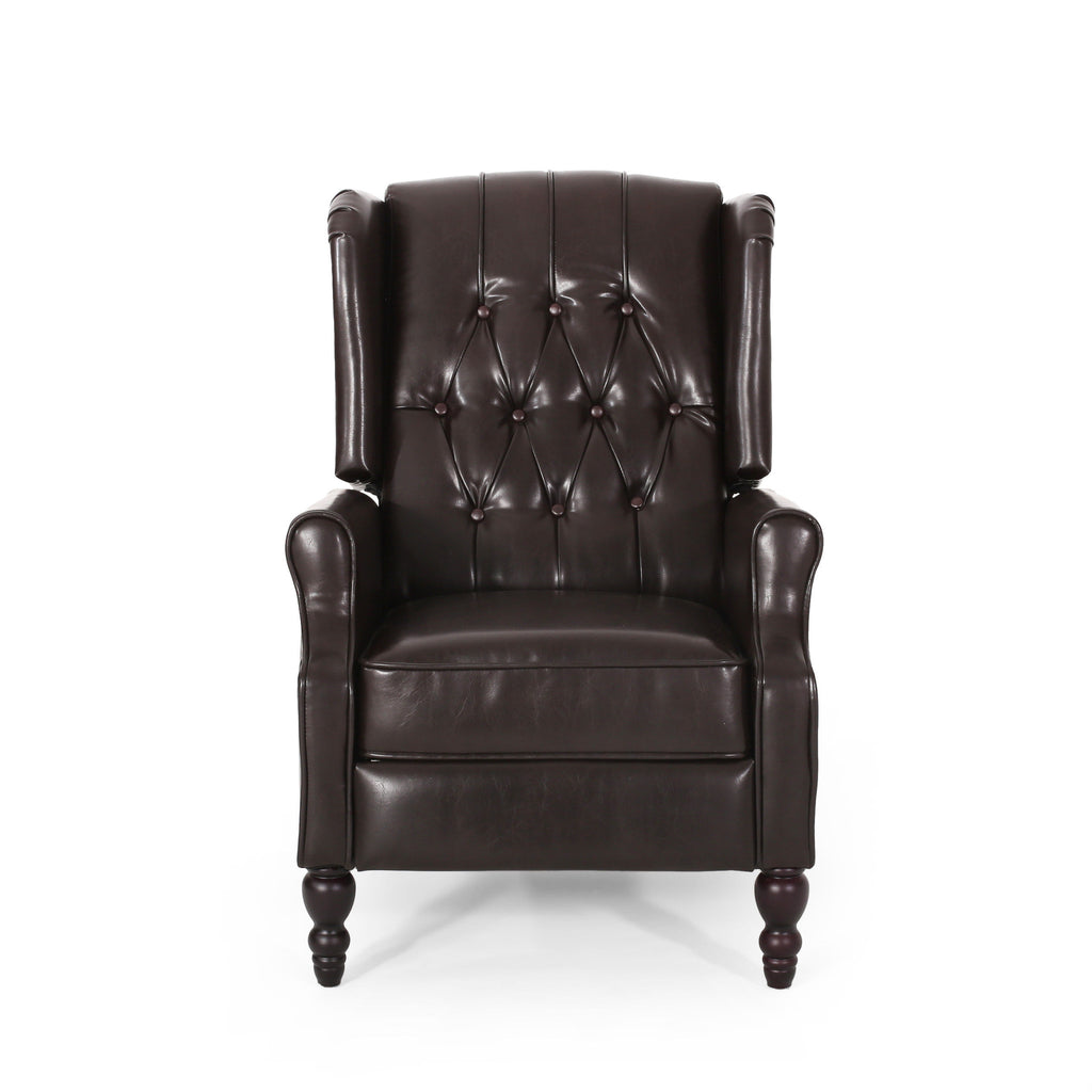 - EASILY RECLINES: Sit back and relax in the Elizabeth Recliner. Simply lean back to recline the chair. A footrest will pop out, offering you a comfortable spot for your feet. Enjoy the highest caliber of comfort and relaxation with this classy, brown recliner.