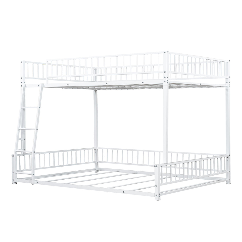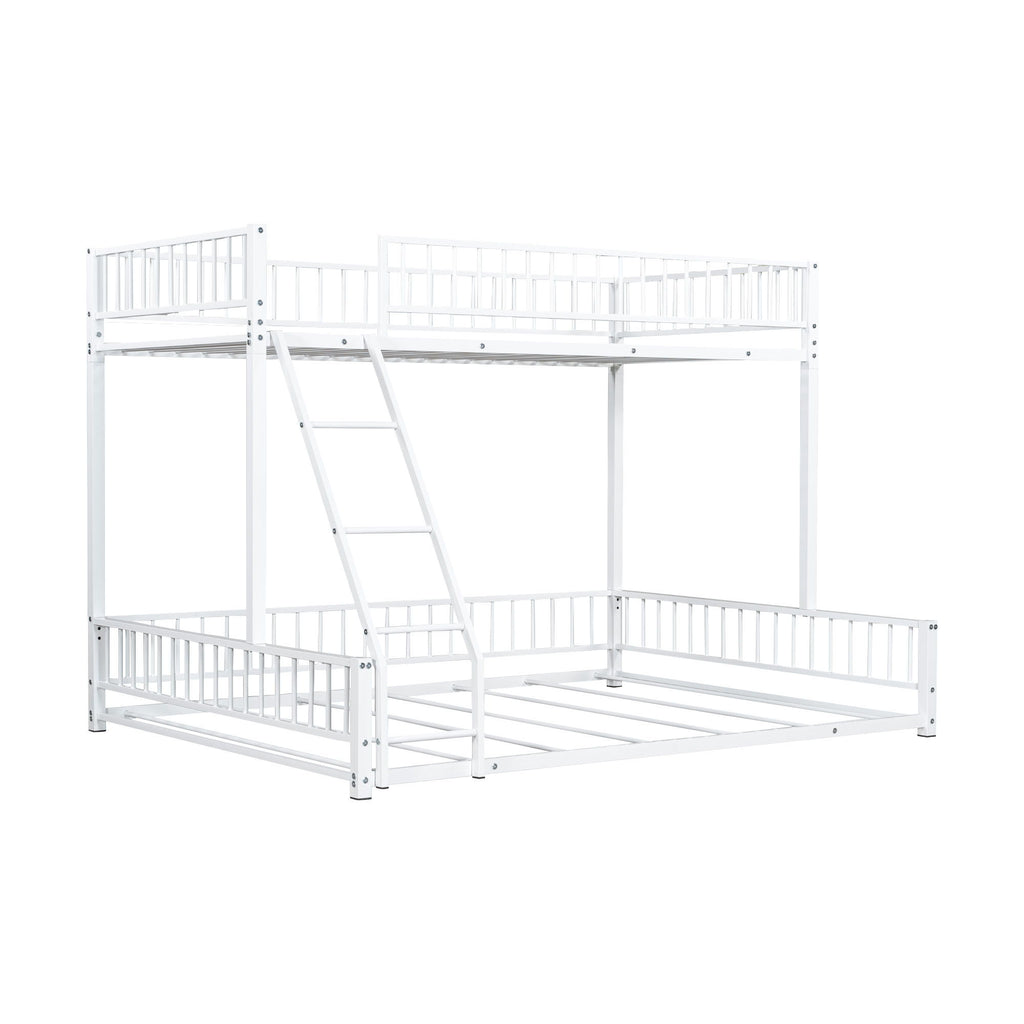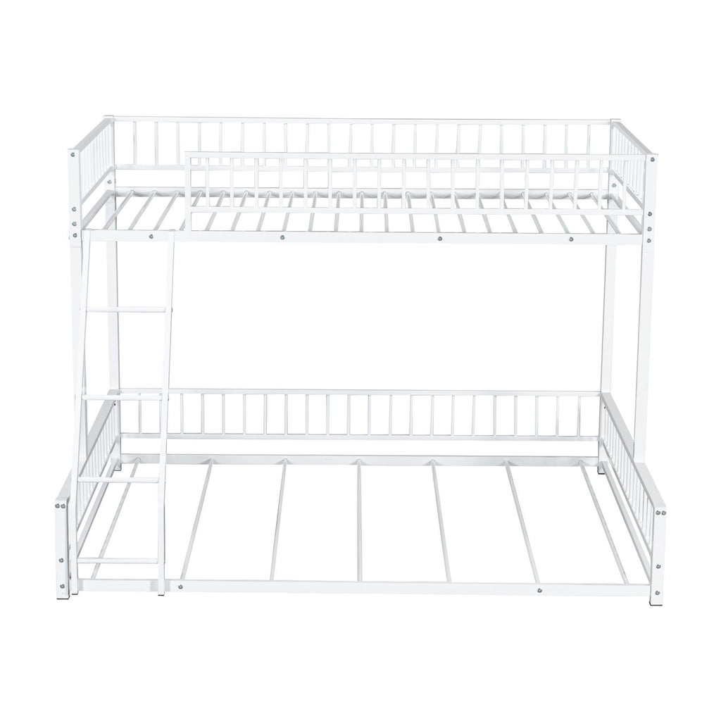 Twin Long Over Queen Bunk Bed Frame With Ladder And Safety Guardrails - White