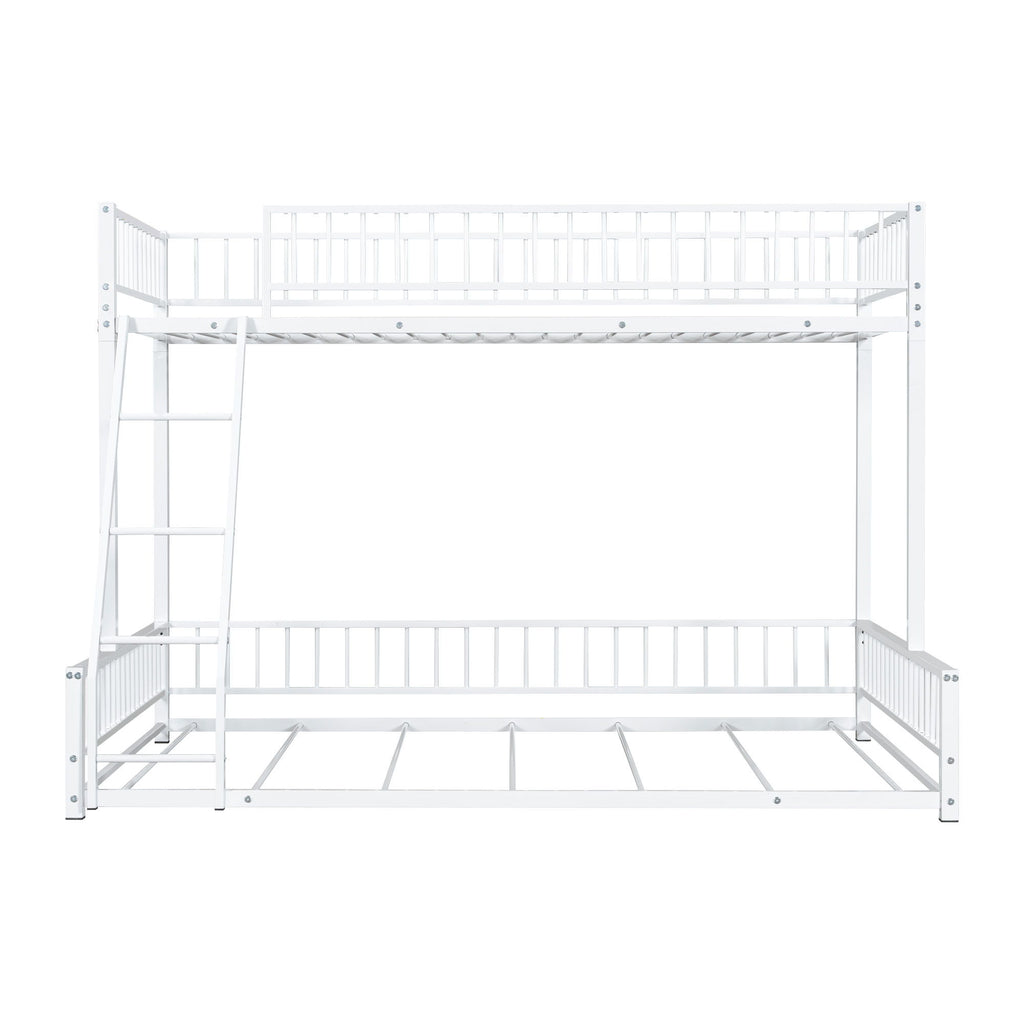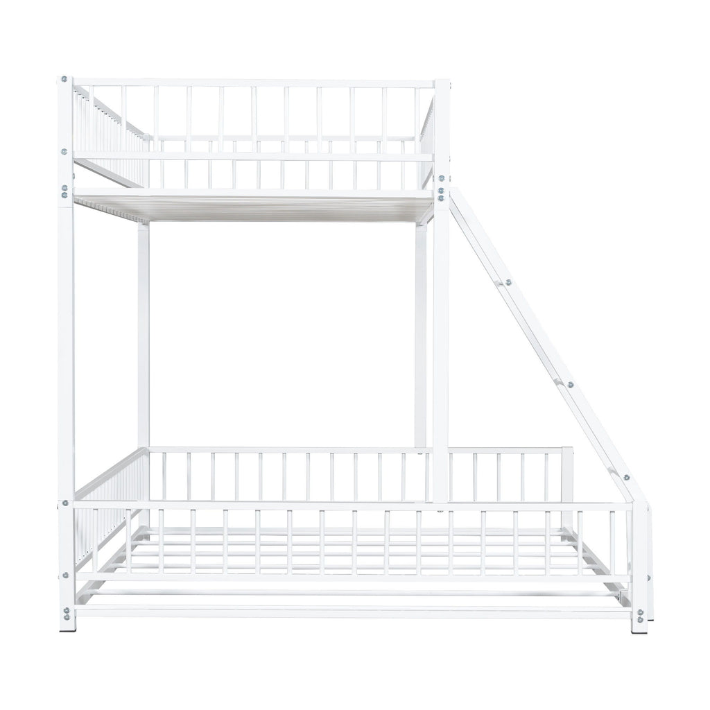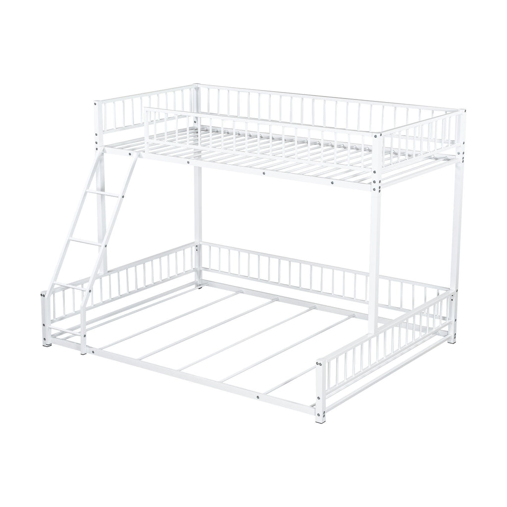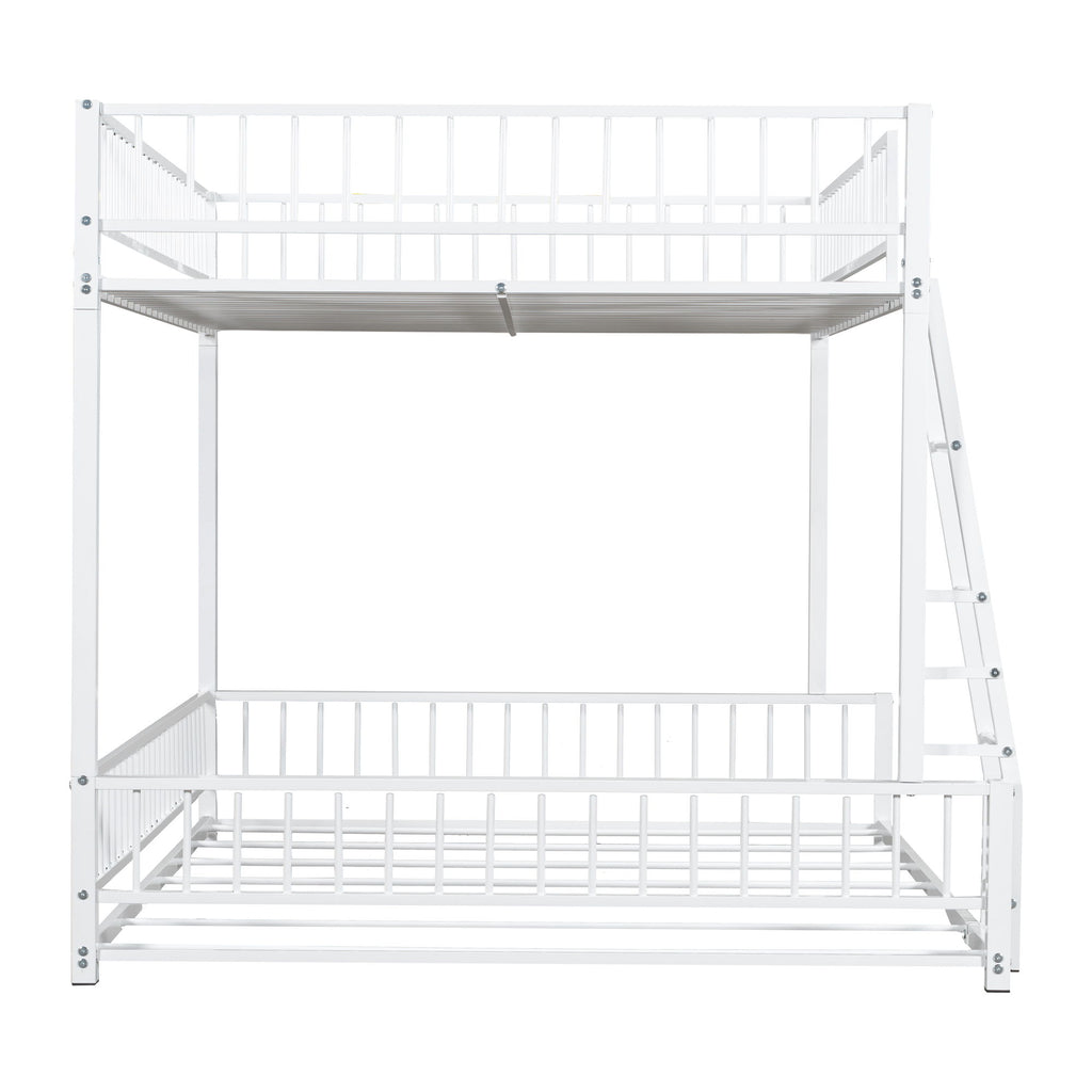 Twin Long Over Queen Bunk Bed Frame With Ladder And Safety Guardrails - White