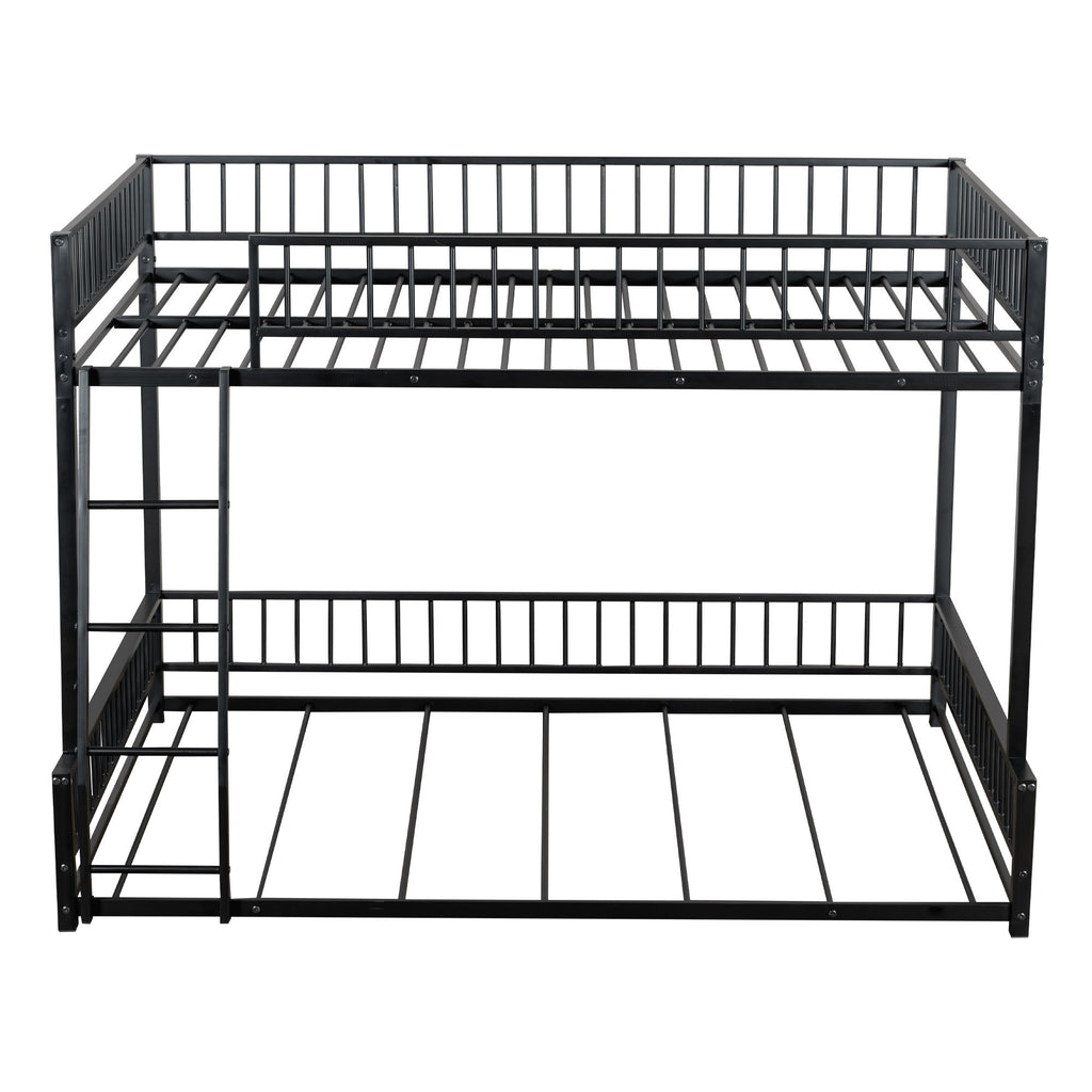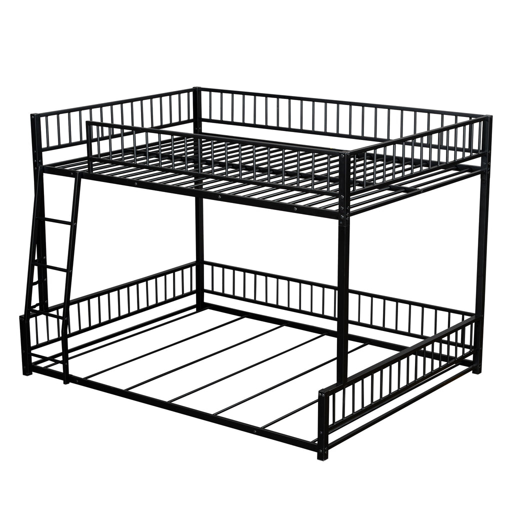 Full Long Over Queen Bunk Bed Frame With Ladder And Safety Guardrails - Black