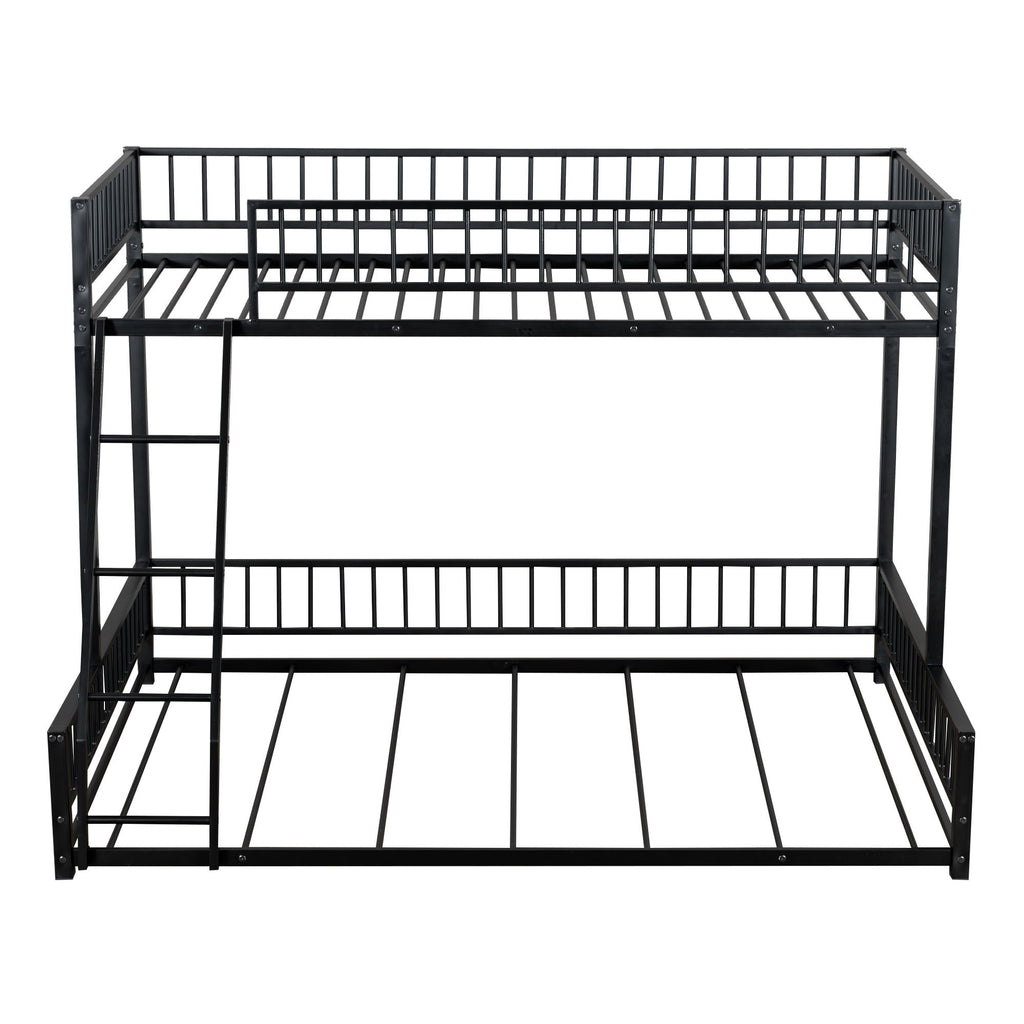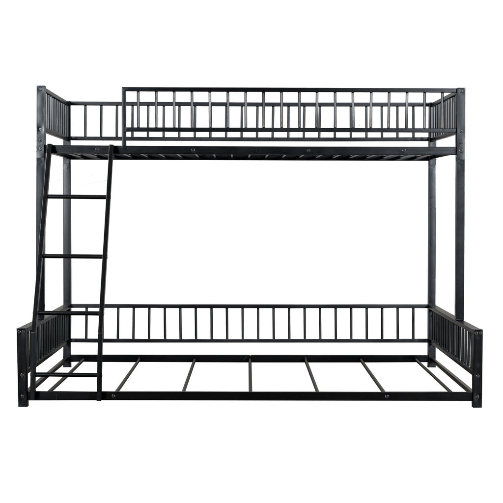 Twin Long Over Queen Bunk Bed Frame With Ladder And Safety Guardrails - Black