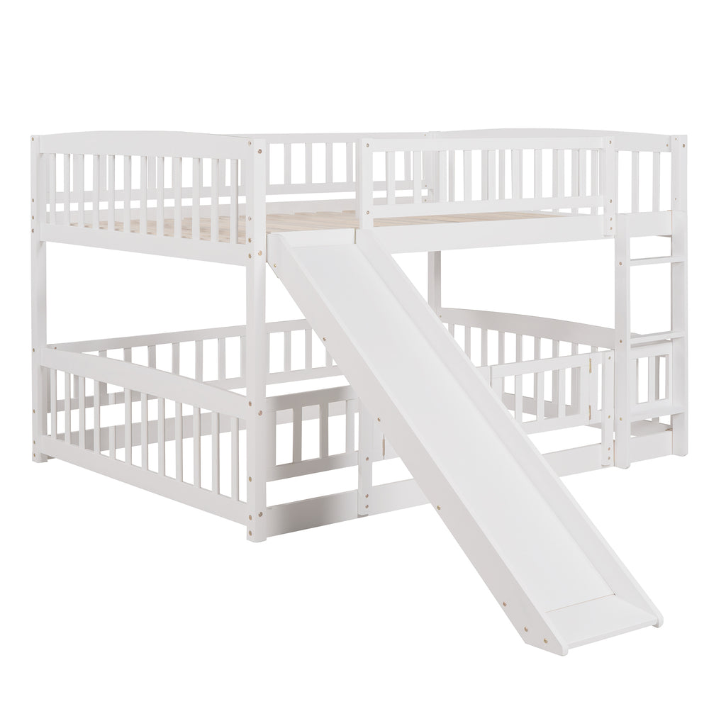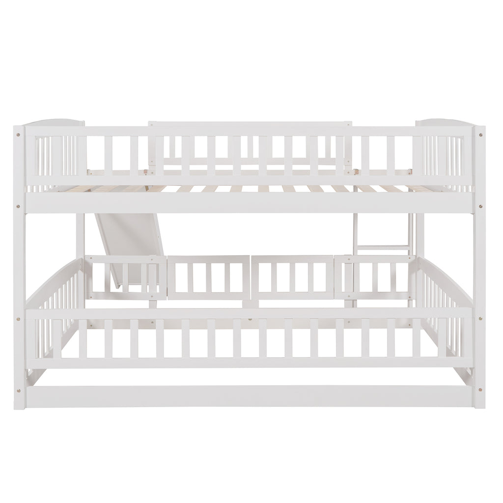 - 【Full Bunk Bed with Slide】- This kids bunk bed has built-in ladders and slides, It is not only a bunk bed, but also a kids play place, in addition, the slides and ladders are convertible, they can be placed left or right,