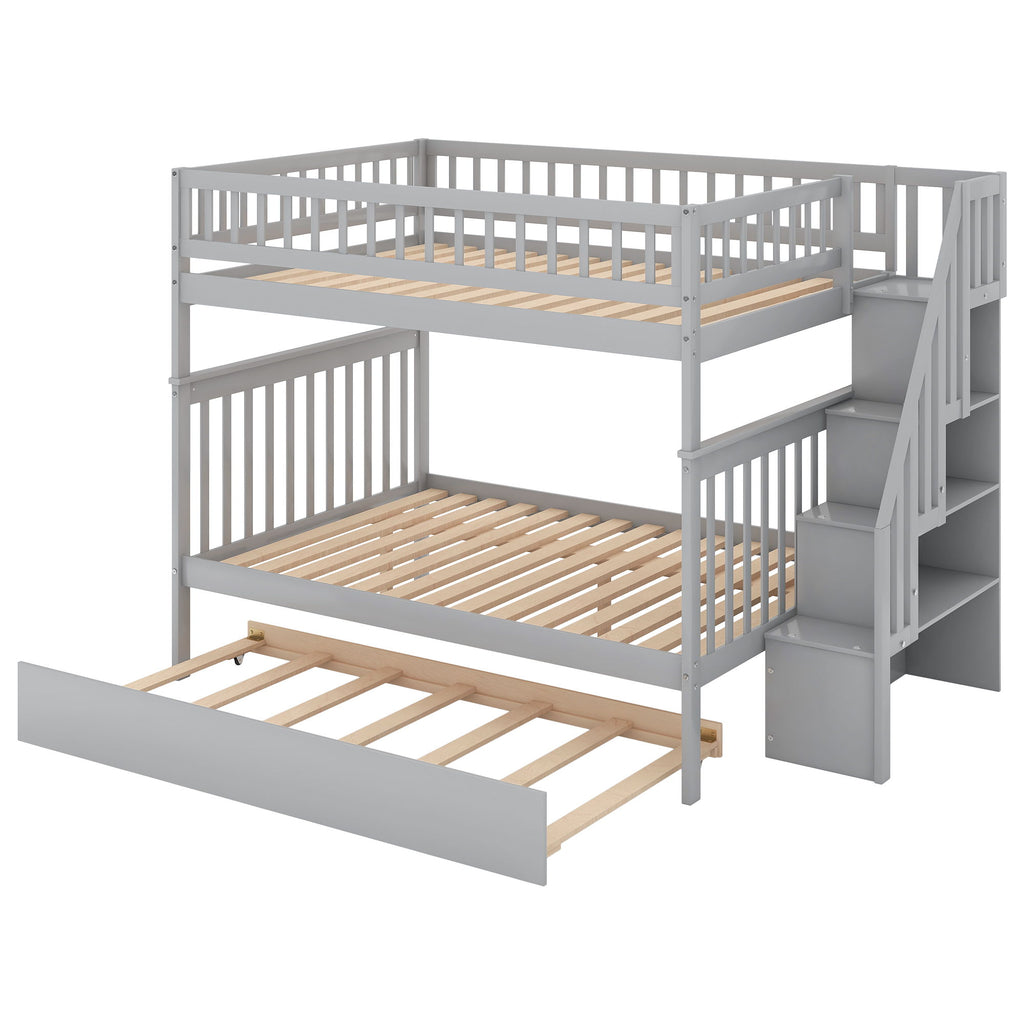 Full Over Full Bunk Bed With Trundle And Staircase - Gray