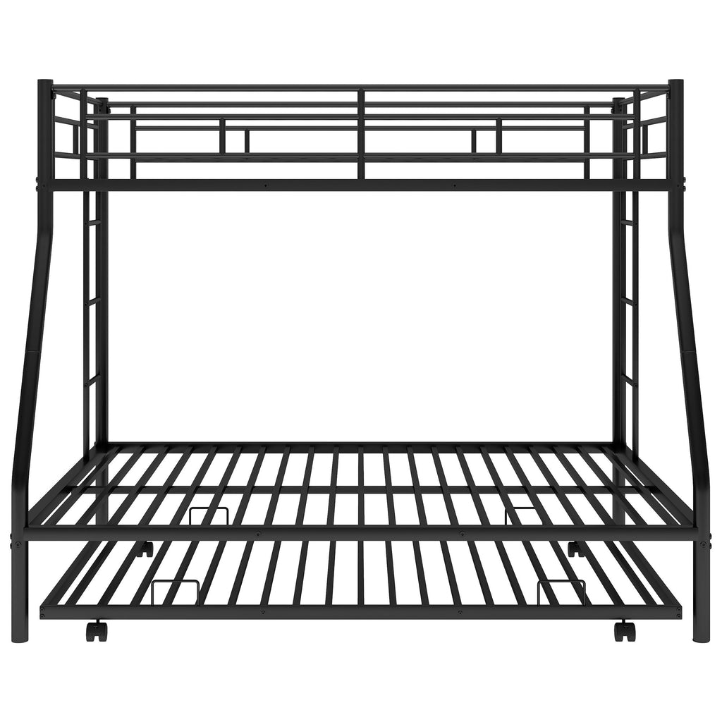 Twin Over Full Bunk Bed With Steel Frame And Twin Trundle, 2 Side Ladders - Black