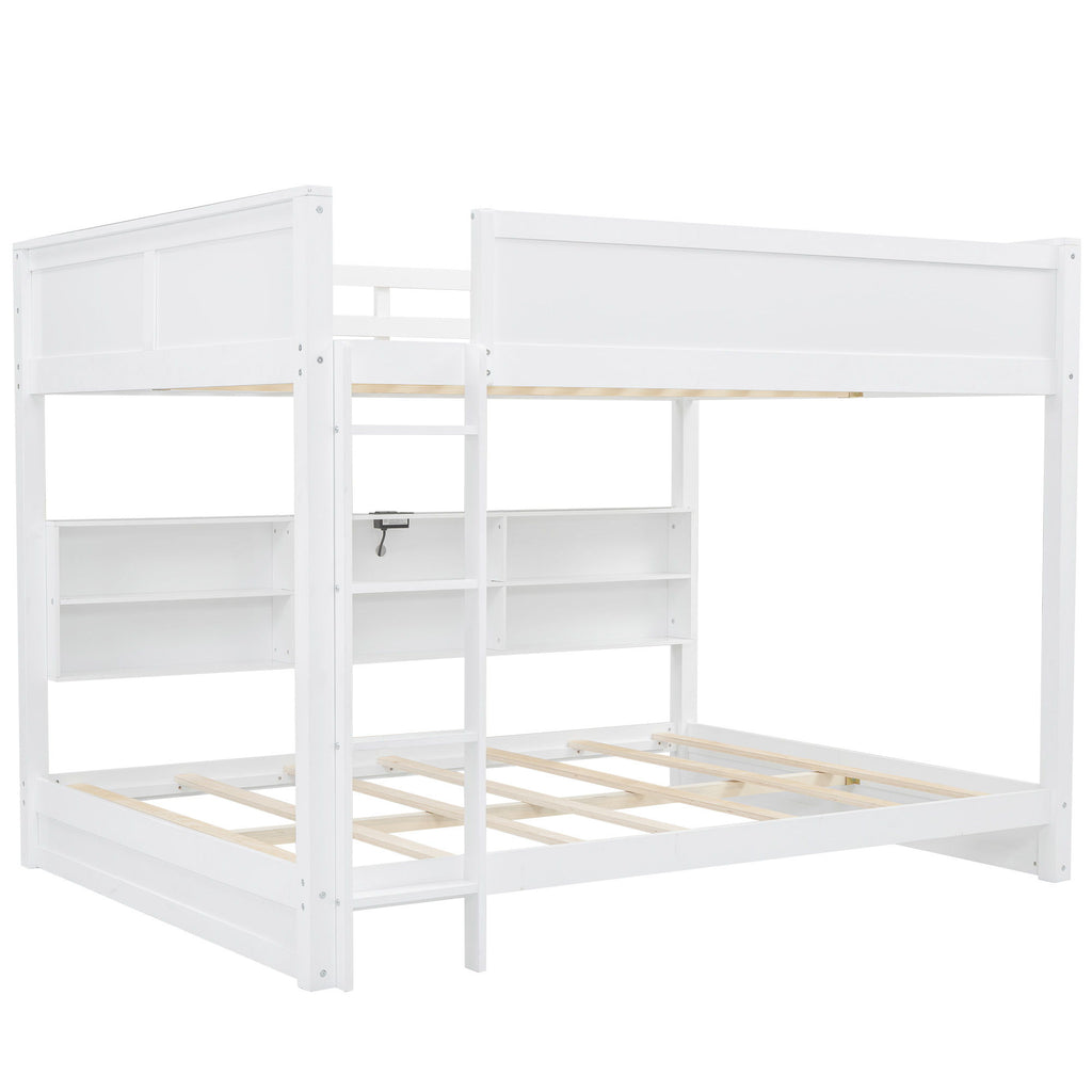 Queen Over Queen Bunk Bed With Storage Cabinets And USB Ports - White