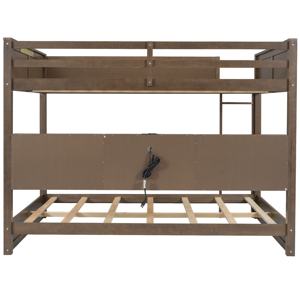 Queen Over Queen Bunk Bed With Storage Cabinets And USB Ports - Wood
