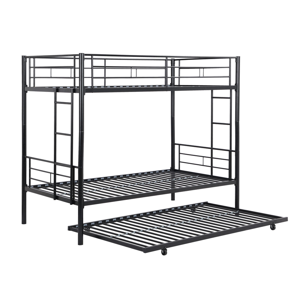 Modern Metal Bunk Bed With Trundle, Durable Steel, Twin Over Twin - Pink
