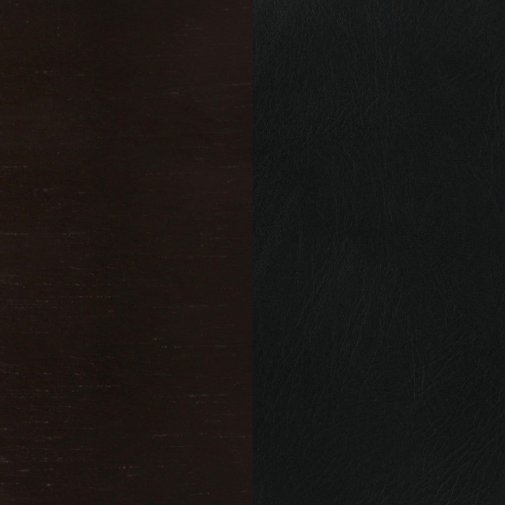 Enjoy casual elegance with this counter height bar chair, crafted from rich cappuccino wood and topped with a plush black leatherette swivel seat. The open-back design adds a bold decorative touch, while angled legs and a round footrest provide reliable support. Perfect for kitchen counters or dining spaces, this chair offers the convenience of a swivel often found in counter stools, blending style with everyday comfort.