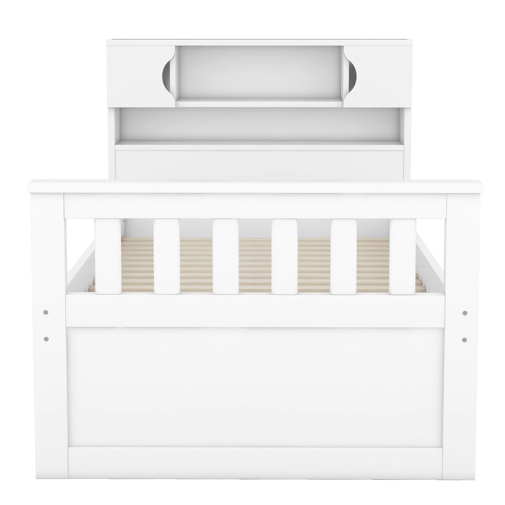 Twin Size Captain Platform Bed Frame With Storage Bookcases, Shelves, And 4 Drawers - White