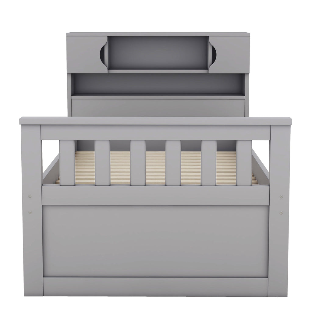 Twin Size Captain Platform Bed Frame With Storage Bookcases, Shelves, And 4 Drawers - Gray