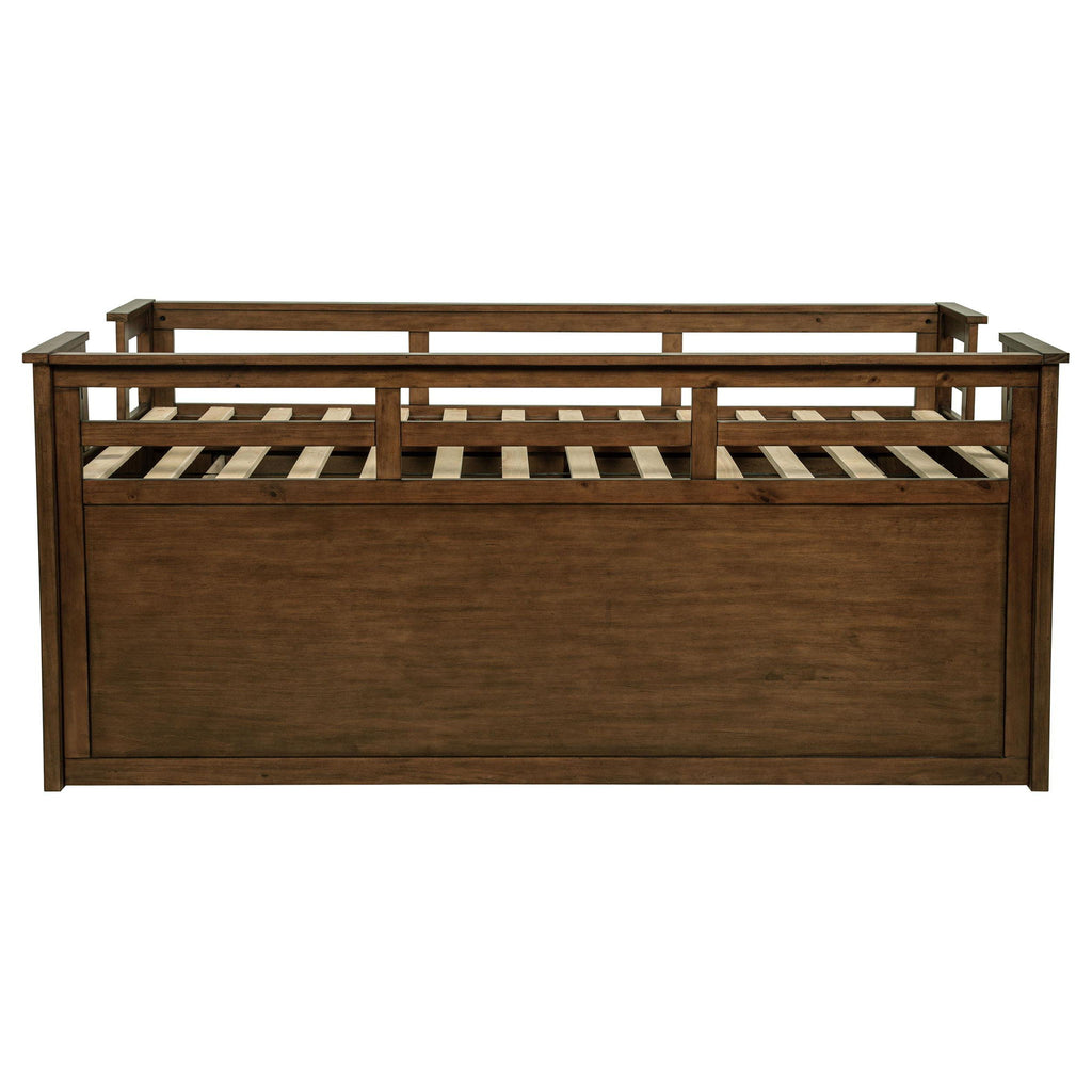 This captain's bed delivers a practical and stylish solution for children's rooms or compact spaces. Crafted from pine wood, plywood, and MDF, it features guardrails for added safety, a built-in ladder for easy access, and a bold finish that enhances its modern look. Two spacious drawers with smooth-gliding tracks keep essentials within easy reach, while the included slat kit ensures a durable, mattress-ready frame without the need for a box spring. Designed to maximize both style and functionality, this bed is perfect for versatile living.