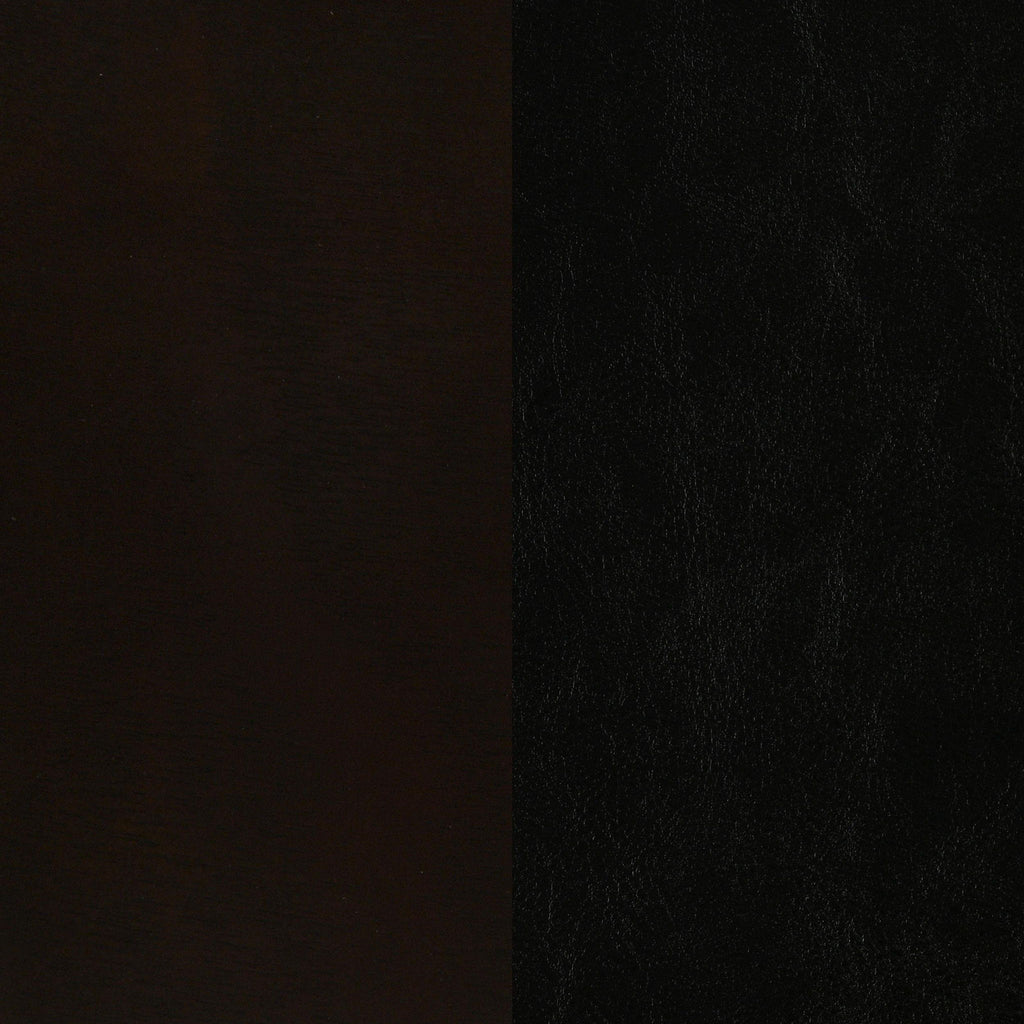 Create a refined retreat with this transitional bedroom set, pairing modern simplicity with timeless craftsmanship. The bed features channel-stitched black leatherette panels framed in a warm cappuccino finish, complemented by clean-lined storage pieces with brushed silver hardware. Each component is crafted from solid wood, veneer, and engineered wood for enduring strength. Blending style and function, this coordinated suite transforms the bedroom into a space of comfort and sophistication.