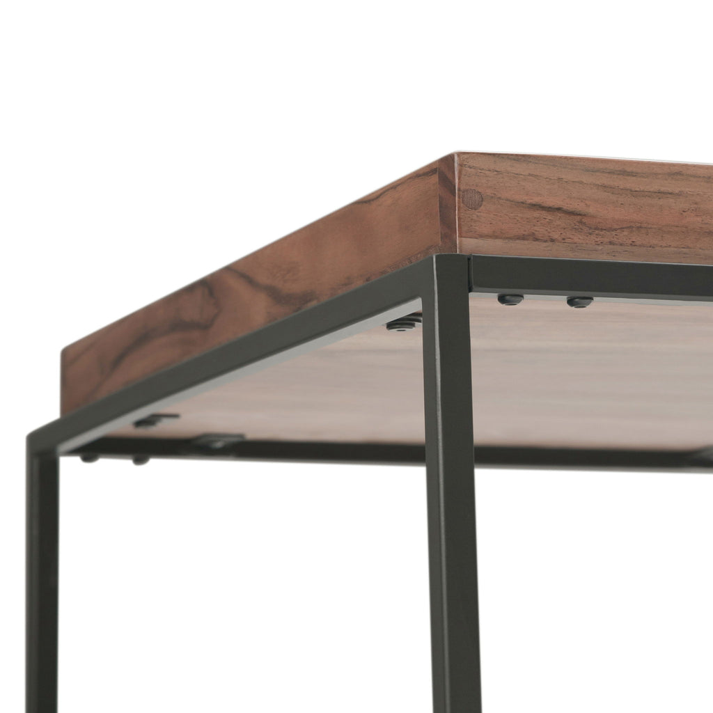 - Features fixed tray table top and solid metal frame and base in a rich black grey finish