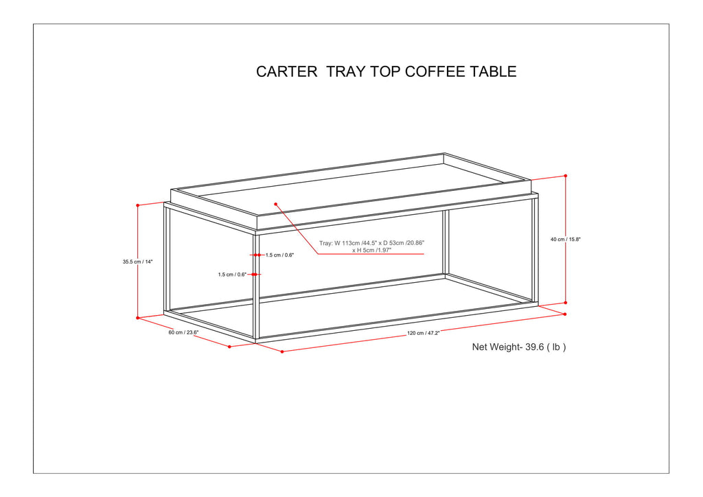 47.2"W x 23.6"D x 15.75"H - 39.7 lb