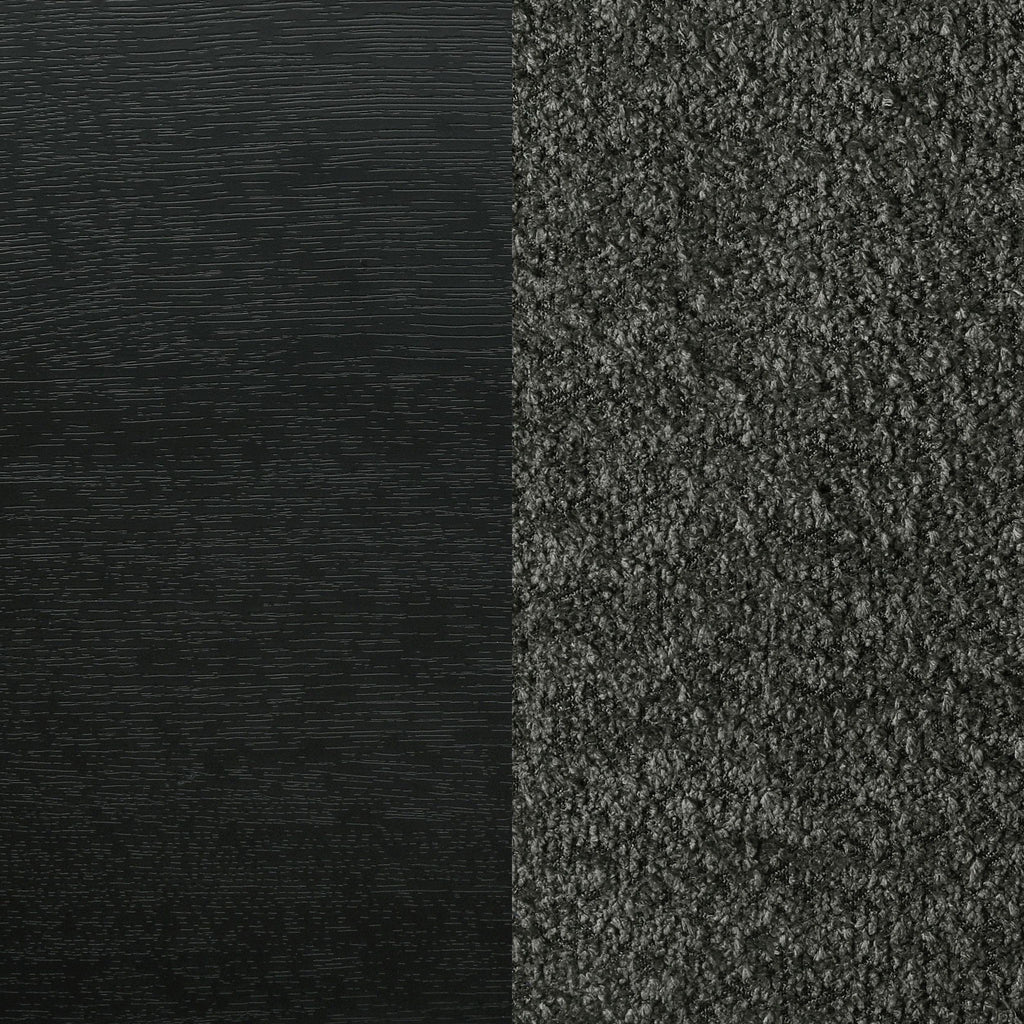 Tailored drama abounds in this modern bed with an upholstered headboard. Its crisp black finish pairs perfectly with charcoal fabric to create a deep, bold focal point for your bedroom. The bed boasts a tall headboard and low footboard, offering airy, open personality. Rounded corners complete the look, providing a softened effect for its overall silhouette. The bed is complete with levelers on its legs, allows for compensation for uneven flooring to ensure stability.