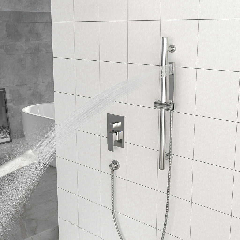 - Included Components: Includes square shower head, shower arm, handheld unit, slide bar, hose, holder, valve, and installation guide.