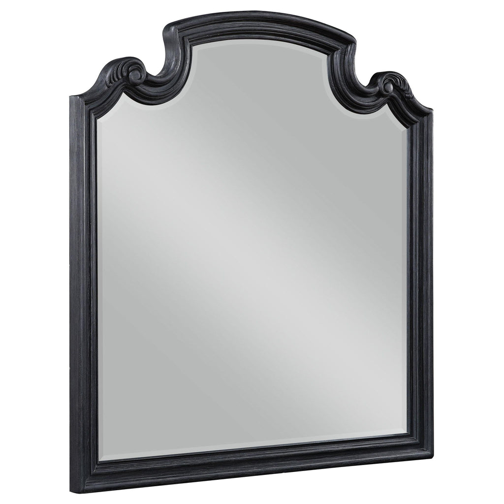 Step into a realm of elegance with this four-piece bedroom set, centered around a majestic queen bed. The bed's tufted headboard and curvaceous silhouette set the tone for a room that echoes with sophistication. Alongside, the nightstand and dresser provide ample storage, their classic black finish and ornate hardware resonating with timeless beauty. The dresser mirror adds a final touch of refinement, inviting light and depth into your personal haven. Each piece in this set is crafted to create an atmosphere of luxury and tranquility.